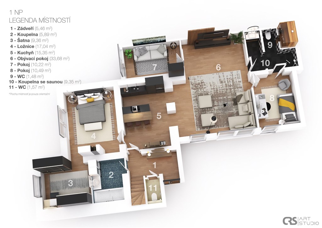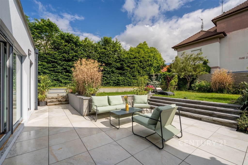 Vila Bergman - soukromá rezidence uprostřed zeleně jen pár minut od Náměstí Jiřího z Poděbrad. Objevte harmonii klidu, komfortu a sofistikovaného městského života. Exkluzivní vila Bergman je samostatně stojící rezidence situovaná ve vilové čtvrti v bezprostřední blízkosti Malešického parku. Tato elegantní vila s promyšlenou dispozicí 7+kk splňuje nejvyšší standardy pro rodinné bydlení i reprezentativní životní styl. Obklopena vzrostlou zelení a pečlivě upravenou zahradou s automatickým zavlažovacím systémem a možností napojení na vlastní studnu, nabízí naprosté soukromí a klid. Dispozice a vybavení: • Prostorný obývací pokoj se vstupem na hlavní terasu • Moderně zařízená kuchyně s jídelnou • Ložnice, která má k dispozici vlastní šatnu a koupelnu, s přístupem na druhou terasu • Dva pokoje, další koupelna s vanou, samostatné WC a relaxační sauna • V patře se nachází druhá ložnice s klimatizací), pokoj, koupelna a úložné prostory včetně podkroví Technické vybavení: • Tepelné čerpadlo zajišťující úsporný provoz (energetická třída A) • Zabezpečovací systém s kamerami, pohybovými čidly a možností napojení na PCO • Elektronický přístupový systém ovládaný i přes mobilní telefon • Venkovní osvětlení se senzory, moderní datové rozvody • Kryté parkování pro tři vozidla přímo na pozemku Proč právě vila Bergman? Vila představuje ideální spojení přírody a města, soukromí a dostupnosti, elegance a moderního komfortu. Neváhejte se obrátit na realitního makléře a domluvte si osobní prohlídku této výjimečné nemovitosti.