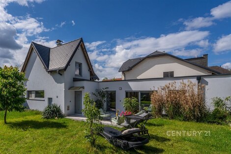 Nadčasová, nízkoenergetická (B), velkoryse pojatá, třípodlažní vila (z roku 2012) s bazénem, prosvětleným a vzdušným interiérem na slunném upraveném…