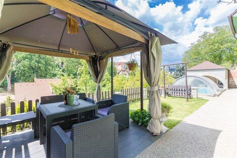 V exkluzivním zastoupení Vám nabízíme k prodeji velkorysý vícegenerační dům 9+3 o celkové podlahové ploše 405 m2 (užitná plocha 315 m2). Tato nemovitost představuje ideální volbu pro náročné rodinné bydlení s dostatkem prostoru pro více generací a zároveň nabízí výjimečnou flexibilitu pro budoucí využití. Rarita a Charakter Lokality Dům je situován v klidném a velmi vyhledávaném Lysolajském údolí (Praha 6). Lokalita se vyznačuje unikátní polohou: je obklopena nádhernou přírodou, a přitom si zachovává rychlou dostupnost do centra Prahy (Metro A Dejvice za 10 minut). Územní plán v Lysolajském údolí již neumožňuje další výstavbu, což zajišťuje trvalou hodnotu a klid Vašeho bydlení. Technický stav a Nízké Náklady (PENB B) Dům je připraven k okamžitému nastěhování. Dům má nízké náklady (PENB B), je kvalitně zateplen a vybaven trojskly. Vytápění v jednotkách je řešeno elektrickými kotly. Komfort umocňuje vrtaná studna se třemi skalními prameny, kterou lze využívat na veškeré domovní potřeby s možností jednoduchého přechodu na městskou vodu. Technická připravenost je vysoká: elektřina je v mědi, voda a odpady v plastu. Promyšlená Dispozice a Flexibilita Dům je ideální pro rodinný život. Má velkou kapacitu a lze jej snadno přizpůsobovat dlouhodobým potřebám rodiny. Velkorysá dispozice s 9+3 místnostmi zajišťuje, že má každá generace svůj klid. Potenciál pro Budoucnost a Zhodnocení je obrovský. Flexibilita dispozice umožňuje do budoucna snadné rozdělení na 3 samostatné jednotky (například jako ubytování pro studenty, krátkodobý pronájem, nebo vybudování penzionu). Dům lze prohlášením vlastníka rozdělit na Byt č. 1: Mezonet 5+1 (157 m2), Byt č. 2: Mezonet 4+1 (120 m2) a Byt č. 3: Garsonka 1+1 (38,5 m2). Rekreace, Relaxace a Zázemí Komfort bydlení umocňuje bohaté zázemí, které je součástí prodeje. K dispozici je udržovaná zahrada s terasou a altánkem, vyhřívaný bazén pro celoroční relaxaci a dvě soukromé garáže s celkem třemi stáními (30 m2 + 20 m2). Zázemí doplňuje technická místnost (30 m2). Doprava Rychlá dostupnost: Každých 15 minut zde projede autobus, kterým se dostanete na metro A Dejvice za pouhých 10 minut. Závěr a Kontakt Financování hypotečním úvěrem je možné, s jehož vyřízením Vám rádi pomůžeme. Půdorysy jsou orientační, zpravidla se největší místnosti opisují. Pro více informací, detailní podklady a nahlédnutí do prostoru přes Matterport nás neváhejte kontaktovat. Rádi Vám celou nabídku představíme osobně. S realizací rozdělení nemovitosti dle Vašeho přání Vám můžeme pomoci.