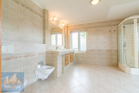 K dlouhodobému pronájmu nabízíme velice pěkný rodinný dům 7+kk s užitnou plochou 360 m2 se zahradou. Jedná se o samostatně stojící rodinný dům na pozemku o celkové ploše 860 m2, v žádané a klidné lokalitě Prahy 6 - Nebušice. Dům nabízí 2 nadzemní podlaží, jedno podzemní podlaží se zázemím a samostatně stojící garáž pro 2 automobily. V přízemí domu se nachází zádveří, vstupní hala, dále velmi prostorný a světlý obývací pokoj, volně navazující na jídelní část a plně vybavenou, moderní kuchyni. K dispozici je také pokoj/pracovna, samostatná toaleta, vstup do sklepa, šatna u zádveří s vestavěnou skříní, koupelna s rohovou vanou (jacuzzi). Ve 2. nadzemním podlaží se nachází hala, vstup na terasu 15 m2, dále 5 ložnic, dvě z nich mají k dispozici společnou koupelnu se sprchou a toaletou, jedna z ložnic má vstup na balkon. Další samostatná koupelna se sprchou a toaletou v patře. K dispozici také šatna, vybavena vestavěnými skříněmi po obou stranách. Sklep nabízí variabilní využití - pracovna, herna, tělocvična, dále zahrnuje technické zázemí - plynový kotel na vytápění domu, prádelna. V domě jsou na podlahách dřevěné podlahy, v kuchyni a koupelnách dlažba. Parkování v garáži (2 auta), další parkování na pozemku. Dům je zabezpečen alarmem s možností napojení na PCO. Velmi pěkné moderní, rodinné bydlení. V docházkové vzdálenosti se nachází občanská vybavenost, mezinárodní škola International School of Prague, základní škola, obchod, v těsné blízkosti parku Divoká Šárka. Platba nájemného kvartální, kauce ve výši tří nájmů. Dům je volný k nastěhování ihned, doporučujeme jeho prohlídku.