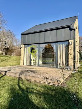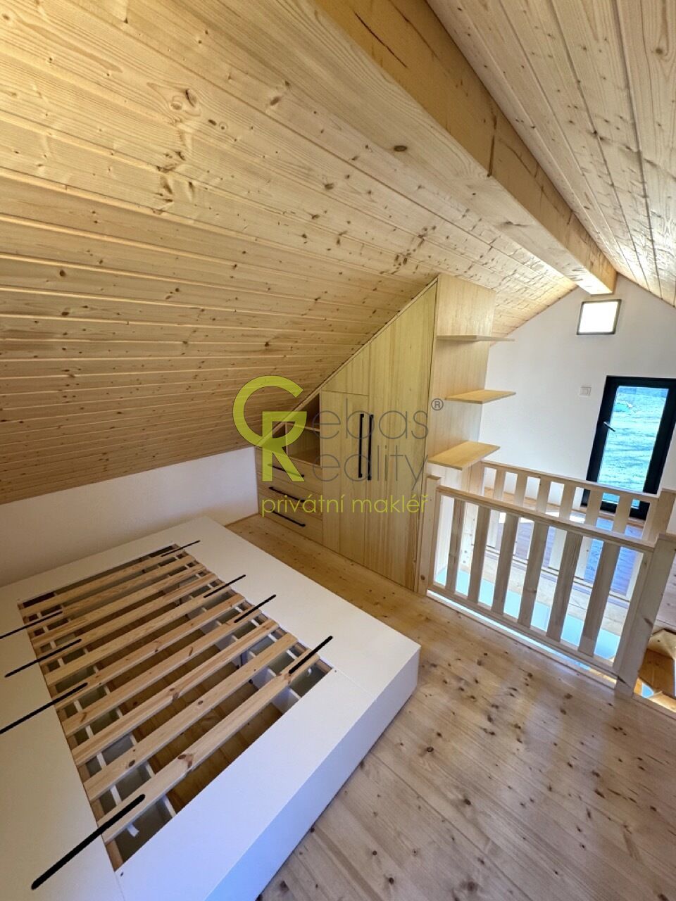 Ve výhradním zastoupení si vám dovolujeme zprostředkovat pronájem novostavby exkluzivního a celoročně obyvatelného zahradního domku v prestižní chatařské osadě Třešňovka v ulici Na Lahovské, Praha - Velká Chuchle. Dům ve stylu ekologického tinyhouse o dispozici 2+kk nabízí obytnou plochu o velikosti cca 50 m2 + plochu terasy 15 m2 přístupnou přes atraktivní velkoformátové okno HS portál po celé délce terasy a domu s orientací na jižní stranu. Stavba je umístěna na pozemku o krásné a soukromí zajišťující velikosti 1000 m2, který je součástí celoročního pronájmu. Dům k pronájmu včetně vybavení, které nabízí standard vyšší, než mnoho bytových jednotek. K dispozici kompletně vybavená kuchyňská linka, včetně indukční sklokeramické desky, horkovzdušné trouby, mikrovlnky, myčky a úložných prostor. V obytné části k dispozici dále rozkládací sedací souprava, TV, jídelní stůl se židlemi. Ve 2.NP domu k dispozici manželská postel s úložnými prostory a 2 komody. Koupelna domu se skleněným bezbariérovým sprchovým koutem, toaletou a otopným žebříkem a podlahovým topením. Dům napojen na IS - obecní voda, elektřina, odpad (jímka). Ohřev vody za pomoci elektrického boileru (60l), vytápění úspornými el. přímotopy. Vstup a vjezd na pozemek přes dálkově ovládanou vjezdovou bránu po zámkové dlažbě (parkování pro 2 auta). Dům určen pouze k dlouhodobému pronájmu pro jednotlivce nebo pár. K dispozici od 1.10.2025, prohlídky po domluvě. Pro více informací nebo prohlídku nás kontaktujte, rádi se Vám budeme věnovat. (PENB - D).