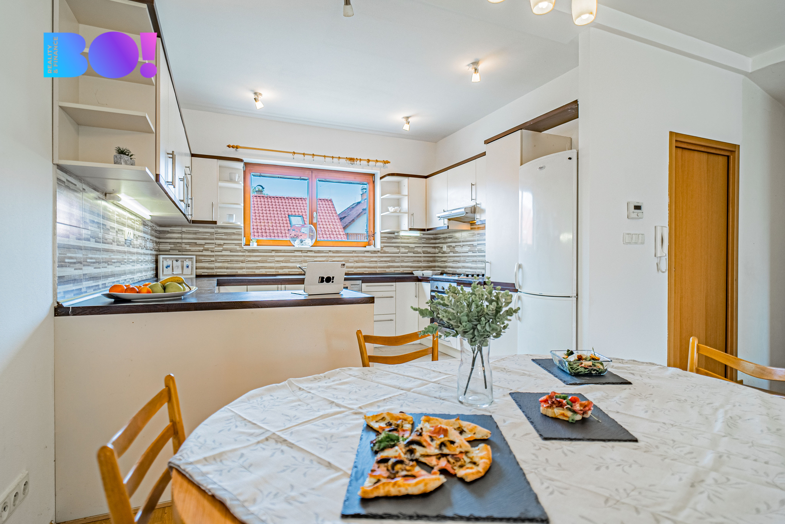 Exkluzivně nabízíme udržovaný řadový rodinný dům 5+kk ve Starých Ďáblicích (Praha 8) s užitnou plochou 300 m2, ideální pro větší rodinu i vícegenerační bydlení nebo investici. Dům má tři nadzemní a jedno podzemní podlaží, prostornou terasu a krásnou zahradou se vzrostlými stromy včetně ovocných (meruňka, třešeň, švestka), která poskytuje dostatek soukromí i prostoru pro dětské hry, relaxaci nebo zahradničení. V podzemním podlaží najdete dvougaráž, komoru a velkou chodbu s úložným prostorem a východem do zahrady. V prvním patře pak zádveří, WC a velký obývací prostor, propojený s prostornou, světlou kuchyní. Z obývací místnosti vás dvojité balkonové dveře zavedou na terasu a přes ni do zahrady. Ve druhém patře se nachází dva velké světlé pokoje, spojené chodbou s koupelnou s vanou a WC, dále samostatným WC a komorou. Ve třetím podkrovním patře najdete opět dva velké a světlé pokoje, spojené chodbou a koupelnou se sprchovým koutem a toaletou. Propojení kuchyně s obývacím pokojem nabízí 55 m2 otevřeného prostoru s velkým množstvím denního světla - vysoké stropy a velká okna vytváří vzdušný dojem, který nebývá v řadových domech obvyklý. V domě jsou dvě koupelny a každé patro má min. 1 WC, což je komfortní i pro větší rodinu nebo zástupce více generací. Všechna okna jsou opatřena žaluziemi. V celém domě naleznete kvalitní dřevěné masivní podlahy, dveře a zárubně i dřevěná střešní okna Velux a nadčasový design. V domě jsou nezvykle velké a dobře rozmístěné úložné prostory. Vjezd do prostorné dvougaráže zajišťují rolovací vrata - i po zaparkování dvou aut zde bez potíží umístíte další motocykl nebo kolo. Dům je kompletně napojen na sítě, vytápění a ohřev vody zajišťuje úsporný plynový kotel nebo průtokový ohřívač a je opatřen energetickým štítkem kat. C - úsporný. Nachází se v klidné rezidenční části Prahy 8, pár minut chůze od luk i polí pro vycházky s dětmi, kočárkem či se psy. Přitom jste pár set metrů od sjezdu na D8 - do centra, ale i směrem na Neratovice/Mělník/Teplice se díky tomu dostanete velmi rychle v jakoukoli denní dobu, přesto zde ruch dálnice není slyšet. Lokalita nabízí kompletní občanskou vybavenost (škola, školka, obchody, lékař, restaurace) a MHD zajišťuje velmi časté a rychlé spojení na stanici metra C- Ládví (cca 10 minut). V OC Letňany s multikinem, Aquacentrem a dalším vyžitím jste autem za 5min. Hledáte-li ideální domov pro větší rodinu, pohodlí, nadčasové provedení a klid v zeleni, s vynikající dostupností do Prahy i severních Čech jak autem tak i hromadnou dopravou, tento dům vám nabídne vše. Od kolaudace v roce 2011 v něm bydlela jen jedna rodina a teď je již několik let nevyužívaný, ale pravidelně a často navštěvovaný, udržovaný, vytápěný a větraný. Je i skvělou investiční příležitostí s možností pronájmu nebo může být reprezentativním sídlem firmy. Rádi vám pomůžeme i se zajištěním financování. Neváhejte se ozvat - domluvte si prohlídku a přesvědčte se o výjimečnosti této nabídky osobně!