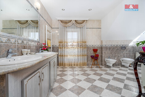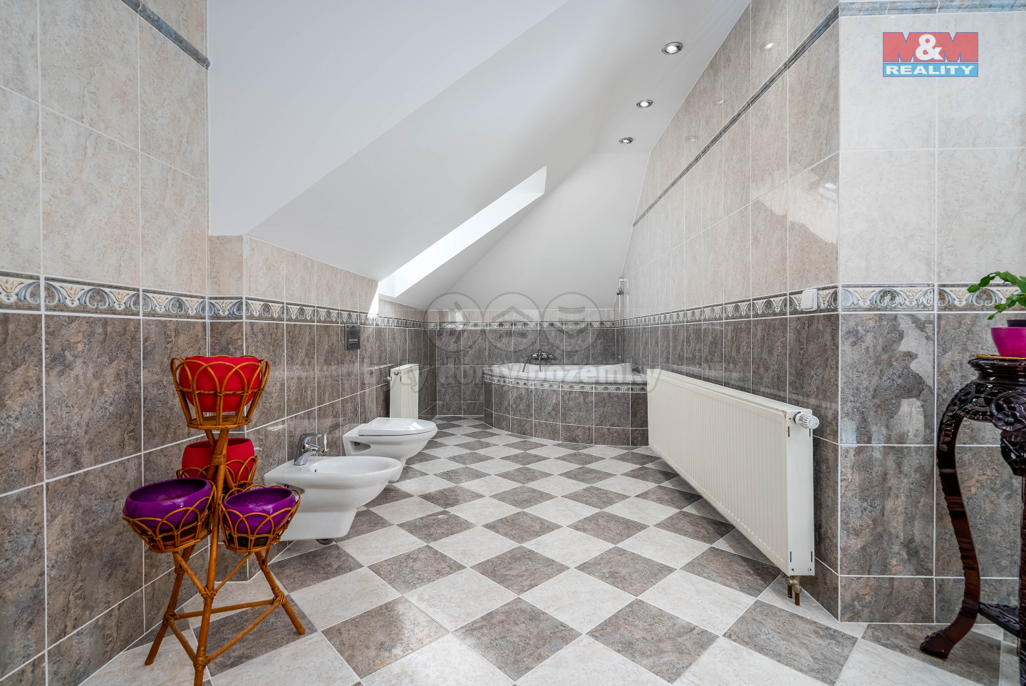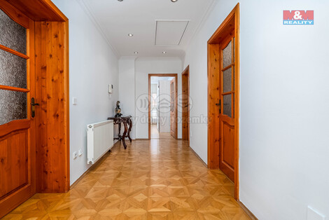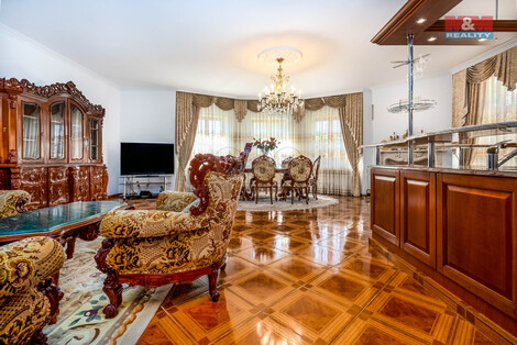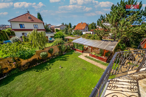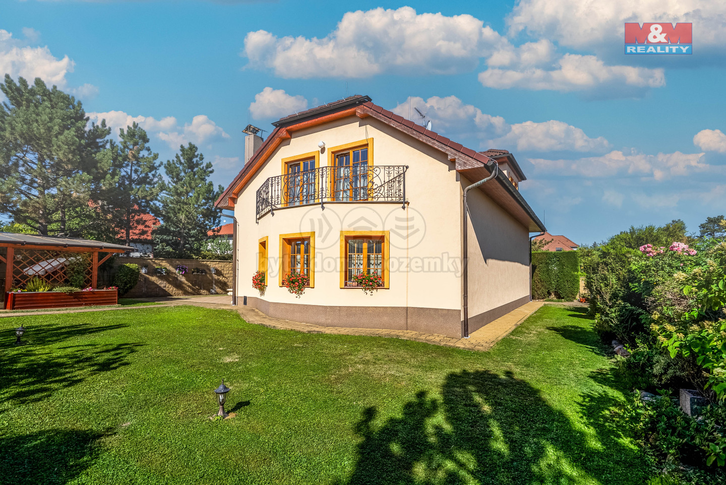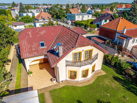 Nadstandardní rodinný dům 5+kk v klidné a vyhledávané části Prahy 9 - Hostavice, jen pár kroků od Přírodní rezervace V pískovně. V přízemí vás uvítá velkorysý obývací prostor s krbem, kuchyní Sykora a přímým vstupem na terasu, reprezentativní vstupní chodba a koupelna se sprchou a finskou saunou. V patře najdete čtyři prostorné ložnice s přístupem na balkony, technickou místnost a koupelnu s vanou. Dům je vytápěn plynovým kotlem s podlahovým topením v přízemí a v obou podlažích je instalován centrální vysavač. Součástí je i prostorná vytápěná garáž pro dva vozy a další parkovací místa na pozemku. Krásná, udržovaná zahrada s terasou a zastřešeným posezením nabízí absolutní soukromí a ideální místo k odpočinku. Hostavice jsou skvělou lokalitou pro rodinné bydlení - najdete zde kompletní občanskou vybavenost, parky, cyklostezky i perfektní dopravní dostupnost do centra Prahy. Nezmeškejte tuto jedinečnou příležitost - domluvte si prohlídku a objevte dům, který spojuje komfort, soukromí