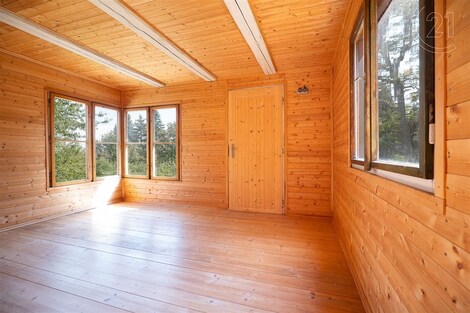 Nabízíme k prodeji nově zrekonstruovanou chatu o ploše 16m2, umístěnou ve velice klidné a žádané čtvrti Praha 6, Lysolaje s výhledem na Prahu. Chata stojí v zahrádkářské osadě Sadová, kdy mírně svažitý, oplocený pozemek o výměře 480m2 je podnajatý od Základní organizace Českého zahrádkářského svazu na dobu neurčitou za cenu 12.000Kč/rok. Pro větší rodinu je možné za stejných podmínek rozšířit i o bezprostředně sousedící pozemek s chatkou. Rekonstrukce chaty proběhla v roce 2021, kdy obvodové stěny spolu se stropem mezi 1. nadzemním podlažím a půdou byly zatepleny, bylo provedeno nové dřevěné obložení včetně prkenné palubkové podlahy uvnitř chatky. Podsklepená část chaty je zděná, kde je oddělen samostatný prostor pro záchod a prostory pro uskladnění ovoce, zeleniny a zahradního nářadí. Do chaty je zavedena elektřina a vedle chaty je podzemní betonová nádrž cca 3m3 pro zachytávání dešťových srážek ze střechy pro zalévání zahrady. Na pozemku sice není zdroj pitné vody, ale v docházkové vzdálenosti máte "Zázračnou studánku" o jejíž vodě legenda hovoří jako o léčivé. Hned vedle studánky je nově vybudovaný biotop, který v parných dnech nabízí příjemné schlazení. Jestli pohrdnete léčivou vodou, tak hned vedle máte místní hospůdku s pivkem a zmrzlinou. Pozemek je udržovaný se vzrostlými ovocnými stromy jabloně, švestky a broskev, což dává novému majiteli dostatek prostoru pro odpočinek na čerstvém vzduchu nebo možnost zahradničení. Co se týká dopravy, tak autem můžete zajet až k pozemku, pokud chcete cestovat autobusem, tak v docházkové vzdálenosti máte zastávku autobusu z které jste do 15 minut v Dejvicích na metru. Chatka je bez čísla. evidenčního a čísla popisného a není určena k celoročnímu bydlení.