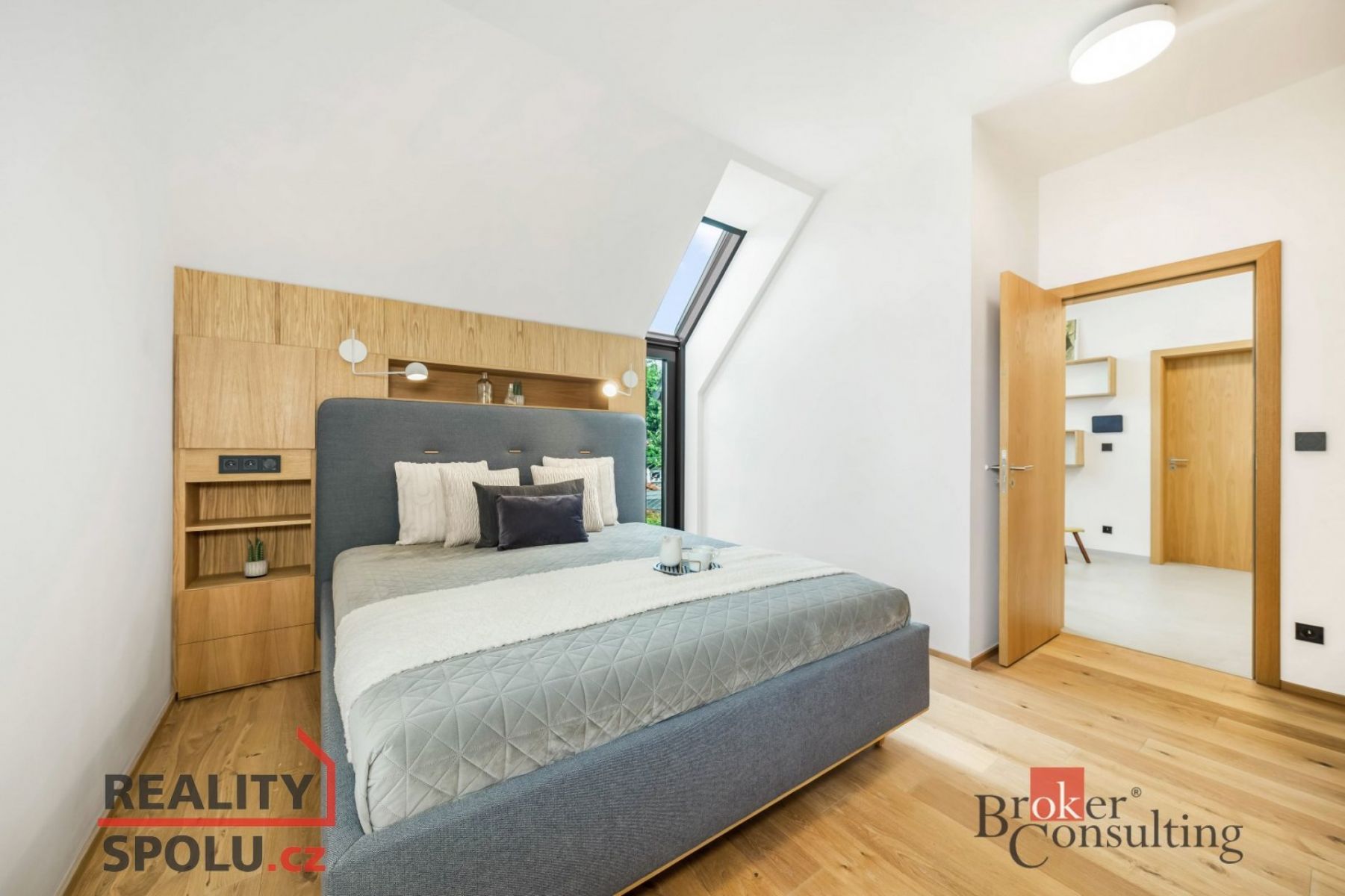Jsou domy, které nejsou jen nemovitostí, ale životním stylem. Tato moderní vila 5+kk v klidné Zátišské ulici v Modřanech byla navržena do posledního detailu s respektem k designu, technologiím i komfortu. Nábytek a zařízení vyrobené na míru, chytrý systém řízení a luxusní materiály vytvářejí prostředí, kde se každý den stává zážitkem. Hlavní přednosti: Dvoupodlažní rodinná vila 5+kk, užitná plocha 224 m Moderní dispozice, otevřený prostor s důrazem na světlo a funkčnost. Interiér v nejvyšší kvalitě Nábytek a zařízení na míru, dvě vrstvy dřevěné podlahy Admonter, dokonalý komfort v každém detailu. Relaxace na dosah ruky Terasa s vyhřívaným bazénem, privátní sauna a soukromá oáza klidu. Pozemek 372 m Elegantní a přitom praktické uspořádání s dostatkem soukromí. Dvougaráž Pohodlné parkování pro dvě osobní vozidla. Technické parametry a materiály špičkové úrovně: - hrubá stavba HELUZ Family 30 - fasádní obklad keramické pálené pásky WIENERBERGER TERCA OLM ORME - krytina keramické pálené tašky Engoba - ploché střechy vegetační extenzivní střecha - terasová prkna garapa - okna hliníková Schüco, žaluzie HELLA Moderní technologie: - tepelné čerpadlo vzduchvoda Vaillant - rekuperace Brink Flair 325 - podlahové vytápění - vše napojené na chytrý systém Loxone Vila, která spojuje moderní architekturu, chytré technologie a komfortní životní styl. Může být vaším rodinným domovem, který nabídne luxus, soukromí i maximální pohodlí každý den. Těším se na Vás na prohlídce této jedinečné nemovitosti! <a href="https://www.eurobydleni.cz/byty/2_kk/plzen/obec-plzen/pronajem/"><strong>Pronájem bytu 2+kk Plzeň</strong></a>
