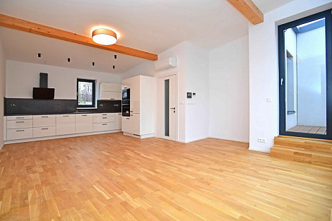 Novostavba ŘRD 5+kk + 2x terasa - 190 m2, který se nachází na pozemku o celkové výměře 285 m2 v Praze 5 - Košíře. Jedná se o novostavbu kolaudovanou v roce 2021. V domě jsou 4 samostatné ložnice, 3 x koupelna (zn. Villeroy & Bosch, Grohe) se sprchovým koutem, jedna i s vanou, 4x WC, obývací pokoj s kuchyňským koutem a vstupem na terasu, kuchyňská linka s vestavěnými spotřebiči (zn. Whirlpool, Franke) - lednice s mrazákem, myčka, horkovzdušná trouba, sklokeramická varná deska, mikrovlnka, digestoř, technická místnost. Vytápění a teplou vodu zajišťuje vlastní plynový kotel. Okna jsou hliníková, východ z obývacího pokoje HS portál, elektricky ovládané předokenní žaluzie, klimatizace, zabezpečovací zařízení, videotelefon. Na podlahách je dlažba v kombinaci s dřevěnými dubovými podlahami. K domu přísluší zahrada osázená vč. stromů s podzemní nádrží s čerpadlem na vodu na zalévání, 2 parkovací stání před domem. Dům možno využívat i jako dvougenerační, v 1.PP samostatná garsonka se vstupem na zahradu a samostatným přístupem přes branku z dolní ulice. Veškerá občanská vybavenost, výborná dopravní dostupnost - 10 min. MHD Metro B, zast. Anděl. K nastěhování dle dohody. Cena 54.900,-/měsíc. Pro více info volejte na tel. 602231398.