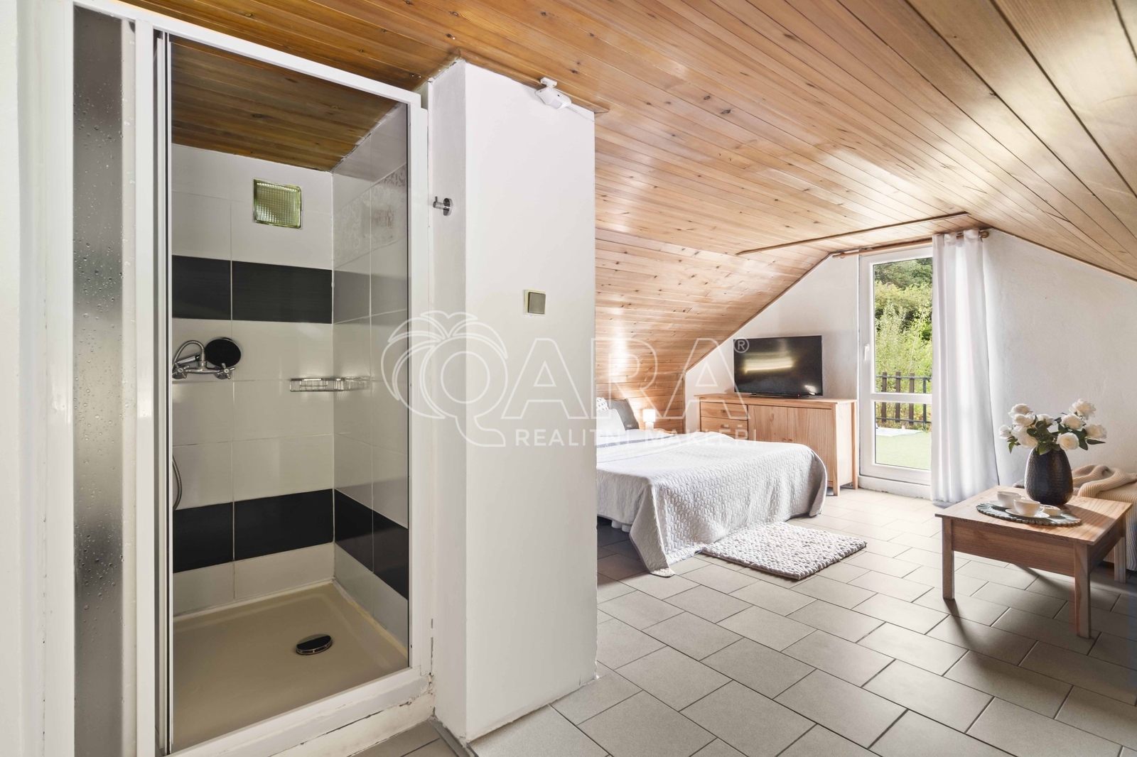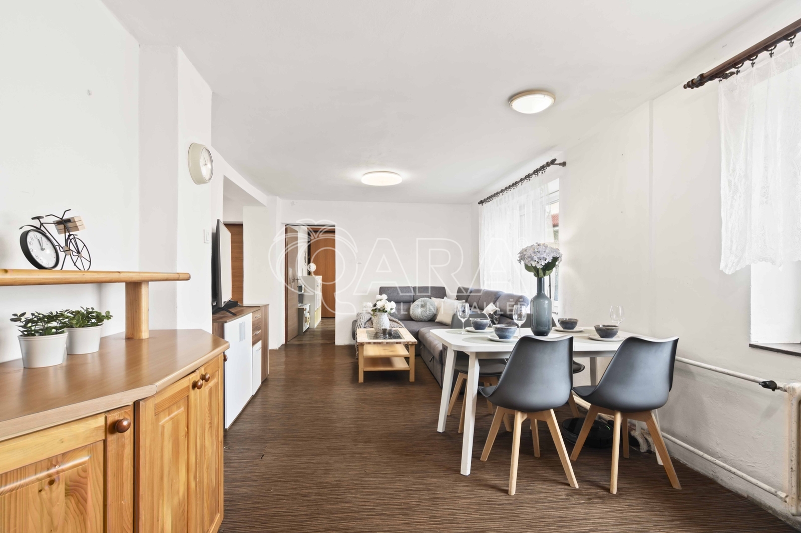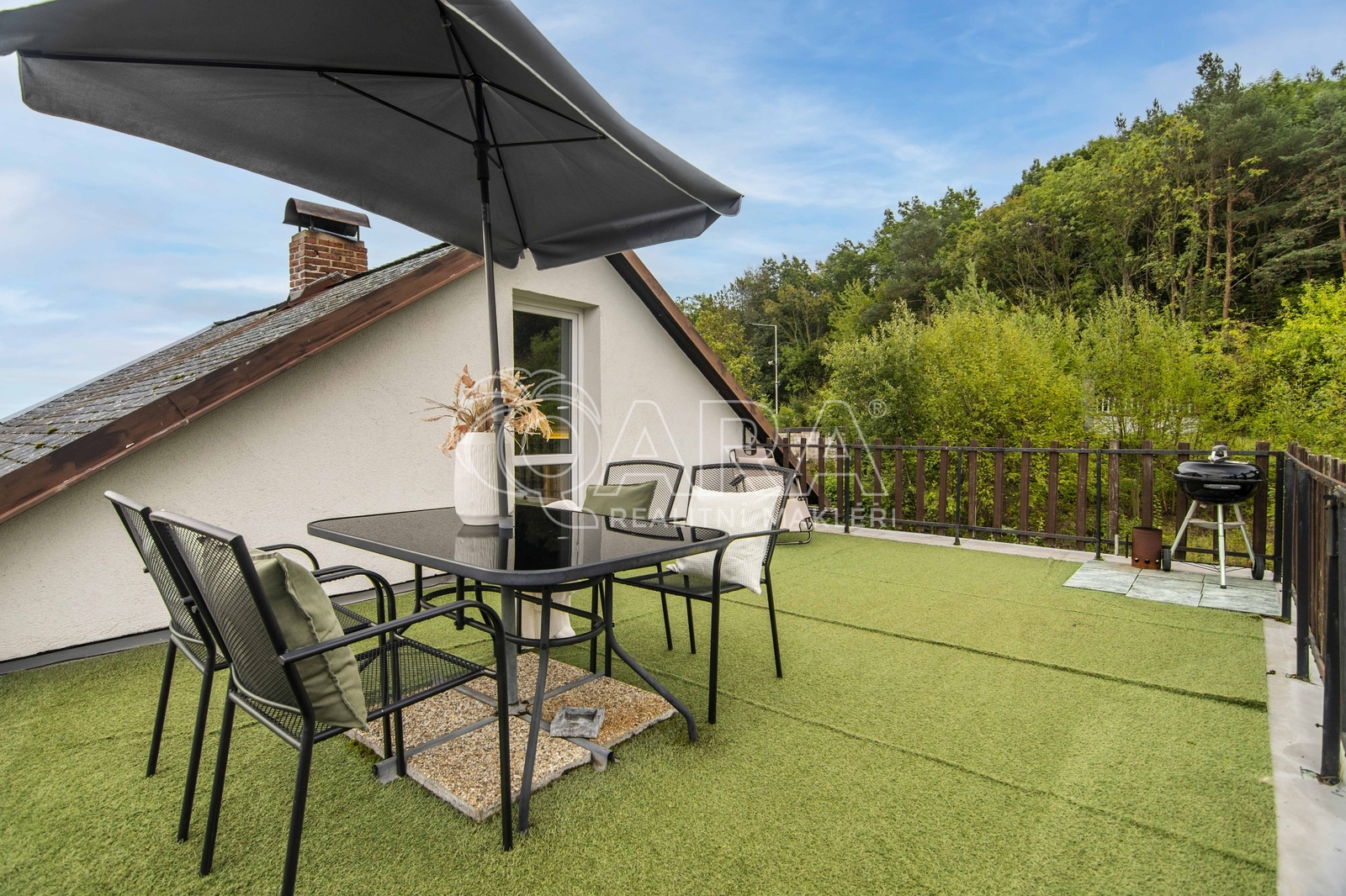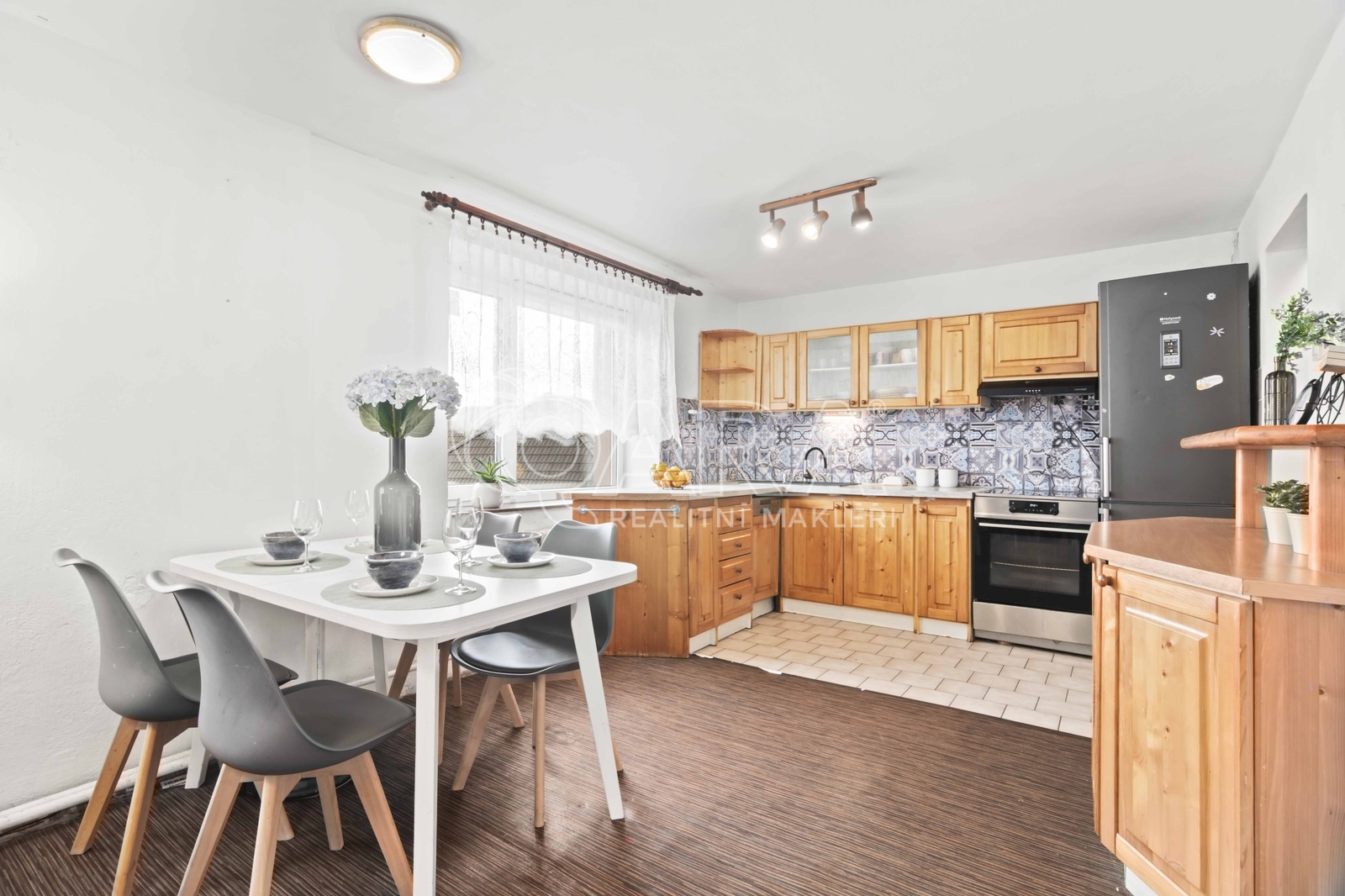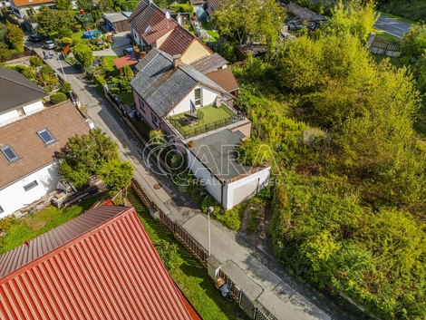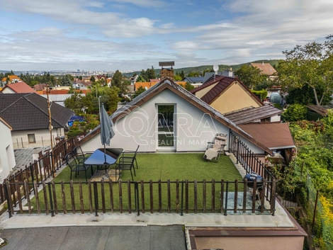 Ve výhradním zastoupení majitele nabízíme k prodeji rodinný dům se zahradou, garáží a sklepem v klidné ulici na Zbraslavi. Aktuální dispozice domu je 4+kk. Současnou dispozici lze však rozšířit i na 5+kk. Celková užitná plocha domu činí 158 m2. Nemovitost je napojena na veřejnou kanalizaci, elektřinu a vodovod. Dům prošel částečnou rekonstrukcí - nová fasáda, zateplení domu, plastová okna (trojskla), nové elektrické rozvody ve 2.NP, drenáž obvodového zdiva, instalace elektrokotle a bojleru. Rodinný dům má dvě nadzemní podlaží s možností dvougeneračního bydlení nebo investičního využití. V každém podlaží se nachází koupelna a samostatná toaleta, celkem tedy dvě koupelny a dvě WC v domě. V prvním nadzemním podlaží se nachází předsíň (cca 10,5 m2), chodba (2,6 m2), prostorný obývací pokoj s kuchyňským koutem (34 m2), ložnice (10 m2), pokoj (11,8 m2), samostatná toaleta, koupelna s vanou a technická místnost. Z obývacího pokoje je vstup na terasu se zastřešenou pergolou (cca 14 m2). Obývací pokoj lze jednoduše rozdělit na dva pokoje. Druhé nadzemní podlaží sestává z galerie, pokoje s kuchyňským koutem (30 m2), sprchového koutu a samostatné toalety. Z pokoje je pak vstup na prostornou střešní terasu (25,7 m2). Topení zajišťuje elektrokotel a kamna na tuhá paliva. Ohřev vody řešen bojlerem. Celková výměra pozemku činí 287 m2 (včetně zastavěné plochy a nádvoří). Na pozemku se dále nachází dílna (11 m2) a garáž (cca 19 m2) Občanská vybavenost v blízkosti domu - MŠ, ZŠ, dětská hřiště, zdravotní středisko, lékárna, obchody, restaurace, kavárny, parky a další. V okolí domu sportovní vyžití pro děti a dospělé - cyklostezky, sportovní centrum, venkovní posilovna, skatepark. Zbraslav je obklopena zalesněnou krajinou s turistickými stezkami a přírodními památkami. V pěší vzdálenosti (3 minuty) od domu autobusová zastávka Baně. Autobusem se dostanete za 20 minut na Smíchovské nádraží - na metro B a tramvajovou zastávku. Vlakem pak za 26 minut na Hlavní nádraží v Praze. Autem jste za 18 minut na Smíchovském nádraží. Rychlý nájezd na Pražský okruh. Nabídka nemovitosti je vhodná na investici nebo na vlastní bydlení. PENB není k dispozici, z toho důvodu je uvedena třída G. Financování hypotečním úvěrem možné, rádi zařídíme. Pokud máte zájem o prohlídku, vyplňte prosím formulář níže, co nejdříve se Vám ozveme.