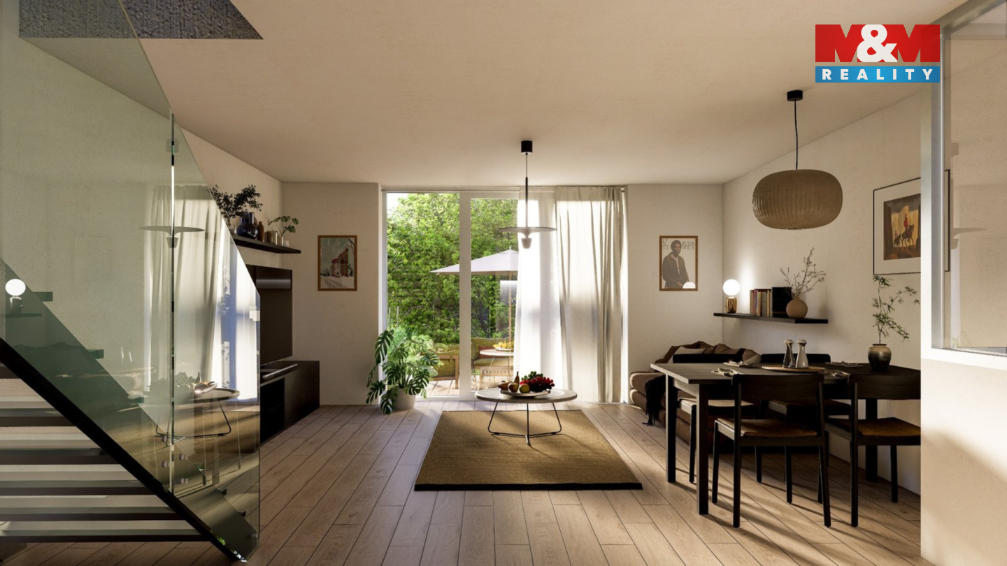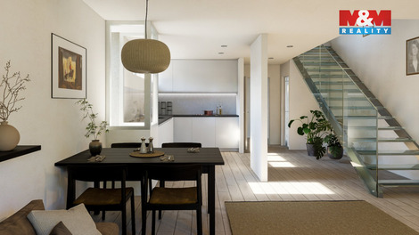 Nabízíme k prodeji novostavbu moderního dvojdomu v klidné části Prahy 9 - Horní Počernice. Dům o užitné ploše 130 m2 je dispozičně řešen jako 4+kk ve třech podlažích. V přízemí se nachází prostorný obývací pokoj s kuchyňským koutem a jídelnou, vstupní chodba, technická místnost a toaleta. V patře jsou dvě ložnice, koupelna s WC a šatna či pracovna. V posledním podlaží je ložnice s vlastní koupelnou a vstupem na velkou terasu s výhledem do zeleně. K domu náleží zahrada orientovaná do vnitrobloku a parkovací stání na vlastním pozemku. Na pozemek navazuje skalnatý převis, který znemožňuje jakoukoliv další zástavbu sousedící se zahradou. Stavba je zděná se železobetonovými stropy, plochou střechou s krytinou z titanzinku. Nemovitost je napojena na kompletní inženýrské sítě, vytápění i ohřev vody zajišťuje elektřina s možností doplnění fotovoltaiky. Lokalita nabízí výbornou dostupnost do centra Prahy i plnou občanskou vybavenost.