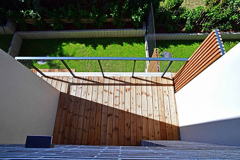 Novostavba ŘRD 7+kk + terasa + balkon + garáž a parkovací stání v domě - užitná plocha 220 m2, který se nachází na pozemku o celkové výměře 132 m2 v Praze 4 - Háje, přímo u Hostivařské přehrady s pláží a parkem. Jedná se o dosud neobývanou novostavbu kolaudovanou v roce 2025. V domě jsou 4 samostatné ložnice, 2 x koupelna se sprchovým koutem a vanou, 3x WC, obývací pokoj se vstupem na balkon, kuchyň s jídelnou, moderní kuchyňská linka s vestavěnými spotřebiči - lednice s mrazákem, myčka, horkovzdušná trouba, indukční varná deska, mikrovlnka, digestoř, prádelna, prostorná předsíň. Podlahové vytápění a teplou vodu zajišťuje vlastní tepelné čerpadlo. Okna jsou s izolačním 3 sklem (v 1.NP s bezpečnostním zasklením), na všech oknech předokenní žaluzie na dálkové ovládání, videotelefon v obou patrech, příprava na klimatizaci. V celém domě jsou použity pouze kvalitní a moderní materiály - na podlahách třívrstvé dřevěné dubové podlahy, dlažba, obklady, vypínače Schneider, veškeré zařizovací předměty jsou od firem Laufen, Grohe a Franke, datové zásuvky ve všech obytných místnostech. K domu přísluší zahrada s podzemní nádrží na dešťovou vodu, dřevěná venkovní terasa je z materiálu Thermowood s venkovní zásuvkou a nezámrzným kohoutem na vodu. Samostatný vjezd pouze pro rezidenty 5 RD přes závoru na dálkové ovládání. Poloha RD přímo u Hostivařské přehrady s pláží, volejbalovým hřištěm a parkem s cyklostezkami a tenisovými kurty zajišťuje sportovní vyžití pro každého vyznavače sportu. V docházkové vzdálenosti je stanice metra Háje, stanice autobusů, mnoho obchodů a restaurací, několik základních škol a školek, banky a zdravotní střediska. V tomto RD jste blízko krásné přírody, ale máte i veškeré vymoženosti moderního bydlení. K nastěhování od listopadu 2025.
