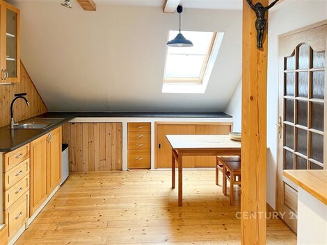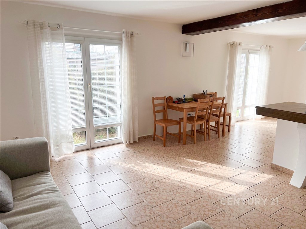 Nabízíme k pronájmu rodinný dům v klidné lokalitě Prahy Lipence, blízko k přírodě u řeky Berounky. Dům je dvoupodlažní o užitné ploše 128 m2, zahrada 450 m2, zastřešená terasa 30 m2, garážové stání pro dvě auta s malou dílnou a skladem. V přízemí 74 m2/ o dispozici 3+kk se nachází prostorný obývací pokoj s krbem s velkým kuchyňským koutem, dvěma ložnicemi, chodbou a koupelnou. Vytápění je elektrické v podlaze. V podkroví 54 m2 o dispozici 3+kk se nachází obývací pokoj s malým kuchyňským koutem a vstupem do koupelny s toaletou a dvěma ložnicemi. Vytápění je elektrické ve stropě. Dům je napojen na městský vodovod a odpad je sveden do jímky. Na zahradě je velký skleník a vlastní studna na zalévání. V místě je restaurace "U Voříškú" asi 5 min chůze. V obci Lipence je nově otevřeno nákupní centrum. Do místa dojíždí městský autobus (10 minut chůze od domu). Dojezd na metro Smíchovské nádraží trvá cca 25 min. Doporučujeme prohlídku.