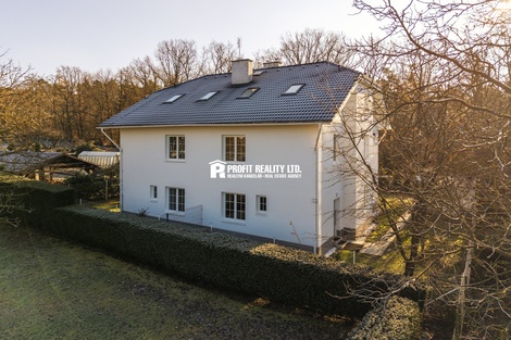 V klidné zóně u lesa, v srdci pražských Lipenců, nabízíme k prodeji vilu se dvěma shodnými bytovými jednotkami, každá o velikosti 6+1, 213 m2. Cena zahrnuje také dvě garáže po 17m2, dvě terasy a vlastní zahradu o rozloze 453 m2. Díky tomu dům představuje výjimečnou kombinaci komfortu, soukromí a dlouhodobé investiční hodnoty. Každá z bytových jednotek poskytuje dostatek prostoru pro vícečlennou rodinu i pro práci z domova. V interiéru převládá světlo, dřevo a kvalitní materiály, které podtrhují klid a promyšlenost celého prostoru. Byt je umístěný ve třech podlažích, přízemí se skládá z obývacího pokoje 30m2, jídelny 21m2, kuchyně 13m2, předsíně a toalety, v 1. patře je ložnice 22m2, 2 pokoje 15m2 a 14m2, koupelna 8m2 a chodba 10m2, 2. patro je tvořeno otevřeným prostorem 62m2, který může sloužit jako pracovna, dětský pokoj nebo ateliér. Obývací pokoj je vybavený krbem, kuchyně kuchyňskou linkou se spotřebiči, koupelna s vanou. Vytápění a ohřev vody zajišťuje elektrický kotel. Renovace exteriéru a interiéru modernizovala standard bydlení. Nemovitost se nachází ve zcela tiché, odpočinkové části Lipenců, přímo u lesa - ideální pro ty, kdo hledají spojení komfortu města s přírodou na dosah. Byt je součástí domu o dvou identických bytových jednotkách, kde každá z nich má samostatný vchod, zahradu, garáž a samostatné LV. Výhodou je i výborná dostupnost, pouhých 6 minut autem od sjezdu z dálnice D4. Jedná se o místo, kde slyšíte vítr v korunách stromů, ne městský ruch. Místo, kde každý metr dává smysl pro nový začátek. Tento byt není jen místo k bydlení, ale prostor pro rovnováhu, klid a dlouhodobou hodnotu. Nemovitost je možné financovat hypotečním úvěrem, který můžeme zprostředkovat. V případě zájmu nás neváhejte kontaktovat pro bližší informace či prohlídku.