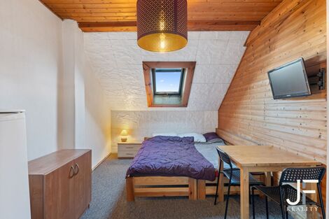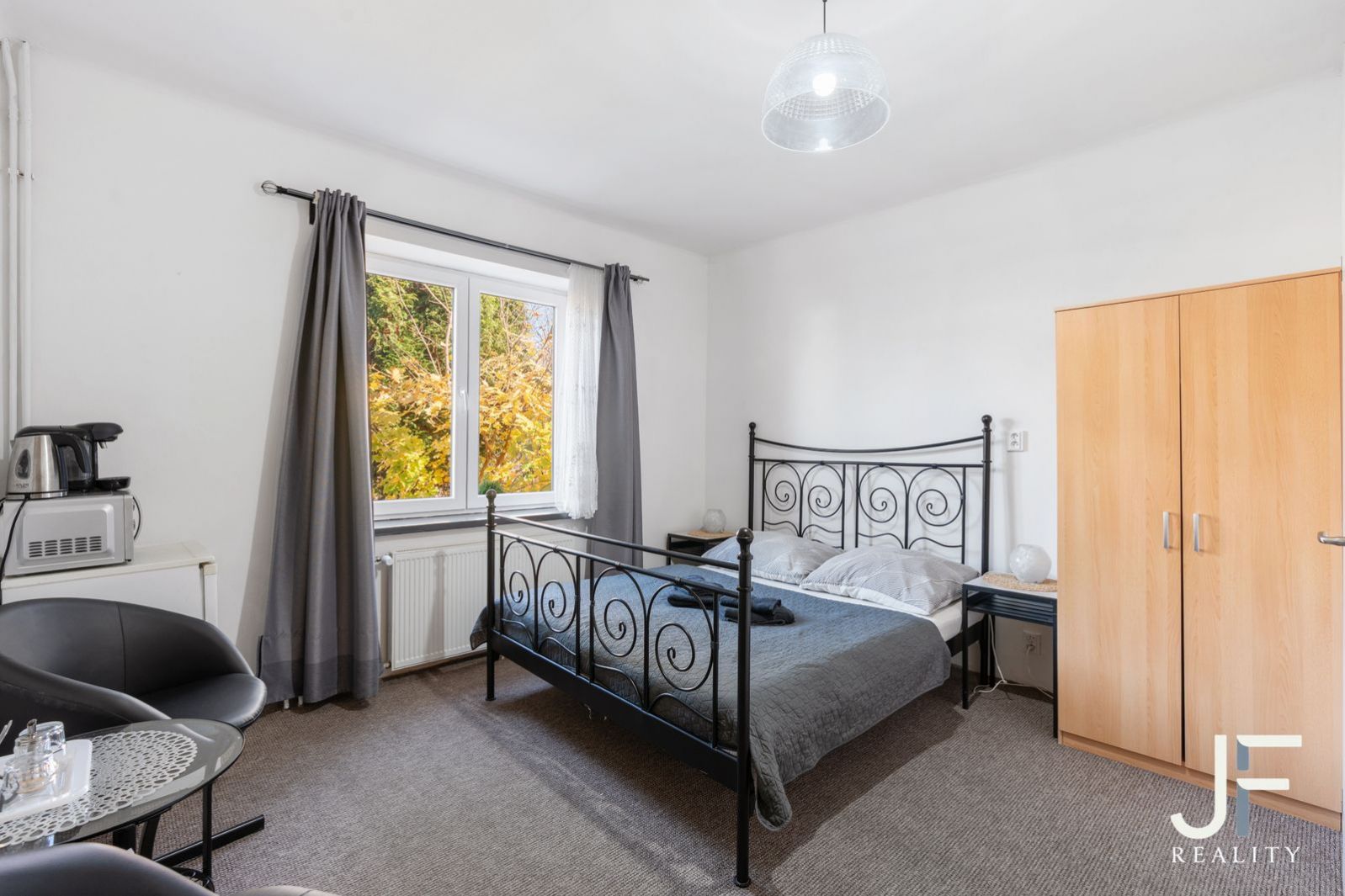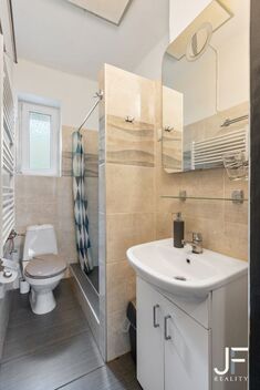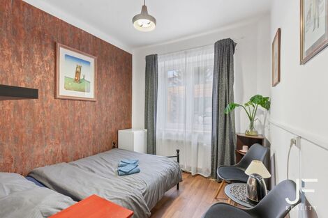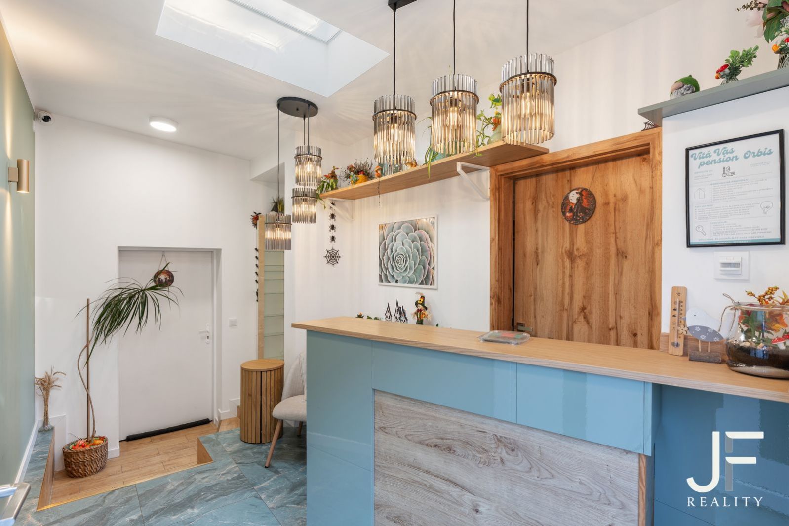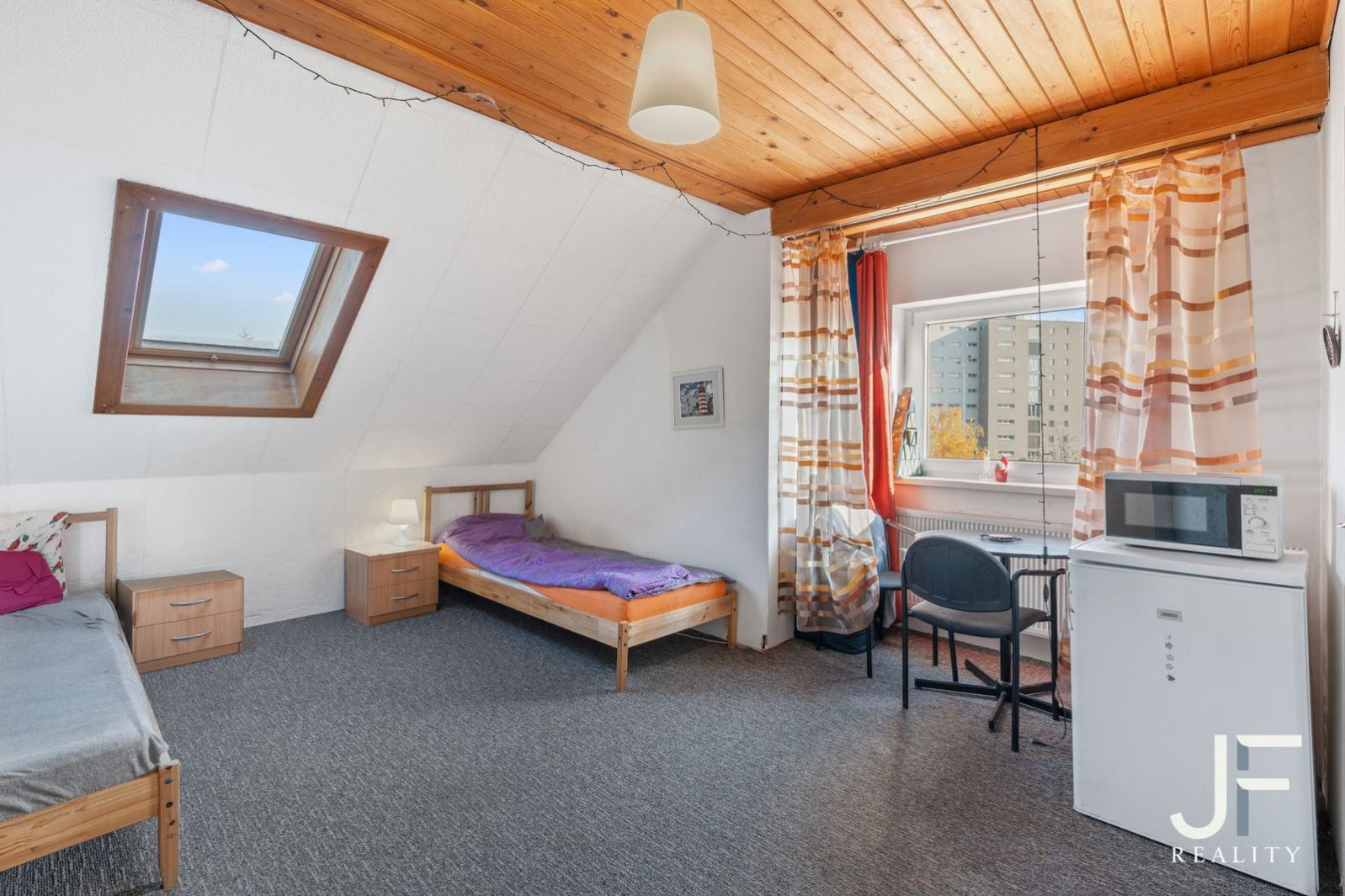 Dům v klidné a skutečně zastrčené ulici nabízí více možností. Jedná se vlastně o polovinu dvojdomu a polořadovou stavbu na konci slepé ulice. Vnitřní uspořádání je prakticky oddělené centrálním schodištěm, takže dům umožňuje kromě vícegeneračního bydlení i kombinaci bydlení a podnikání, čemuž napomáhá nově přistavěná recepce s anglickým dvorkem v přední části domu. Ačkoli je objekt kolaudovaný jako rodinný dům, v posledních letech byl reálně využíván jako penzion. Současně zde funguje také služba Zásilkovny. Na třech podlažích byly tři bytové jednotky dispozice 2+1, nyní je zde celkem osm pokojů krátkodobě i dlouhodobě pronajatých vytvořených jednoduchými stavebními úpravami. V suterénu domu je obytné zázemí pro správce, kotelna a může zde být dostatek skladovacích prostor pro obyvatele domu, nájemce či majitele. V domě probíhaly průběžné rekonstrukce jednotlivých jednotek i technických rozvodů. Byla realizována dostavba recepce a terasy (aktuálně bez kolaudace) a proběhla rekonstrukce topného systému, jehož základem je nový výkonný plynový kotel. Přední strana domu ja zateplená. Celkově je bydlení vhodné k modernizaci a rekonstrukci v rámci, které se opět vrátí stav se třemi jednotkami, které mohou být 2+kk nebo i 3+kk s jednou koupelnou. Objekt je však možné užívat i v současném stavu. Recepce byla dostavěna letos a vyžaduje drobné dokončovací práce, následně kolaudaci. k recepci náleží ještě malá kancelář a anglický dvorek před domem. Za domem se nachází dvorek s pergolou a plechovým zahradním domkem. Potenciál je využít prostor pro parkování 3-4 vozů. Lokalita má dobrou dopravní dostupnost i kompletní občanskou vybavenost. Zastávka metra Roztyly je 15 minut pěší chůzí, nejlepší ocbhodní centrum v Praze, OC Chodov je 20 minut pěší chůzí nebo 4 minuty autobusem... Energetický štítek je v přípravě... <a href="https://www.eurobydleni.cz/komercni-nemovitosti/pension/praha-4/obec-chodov/prodej/"><strong>Prodej penzionu Praha 4, Chodov</strong></a>