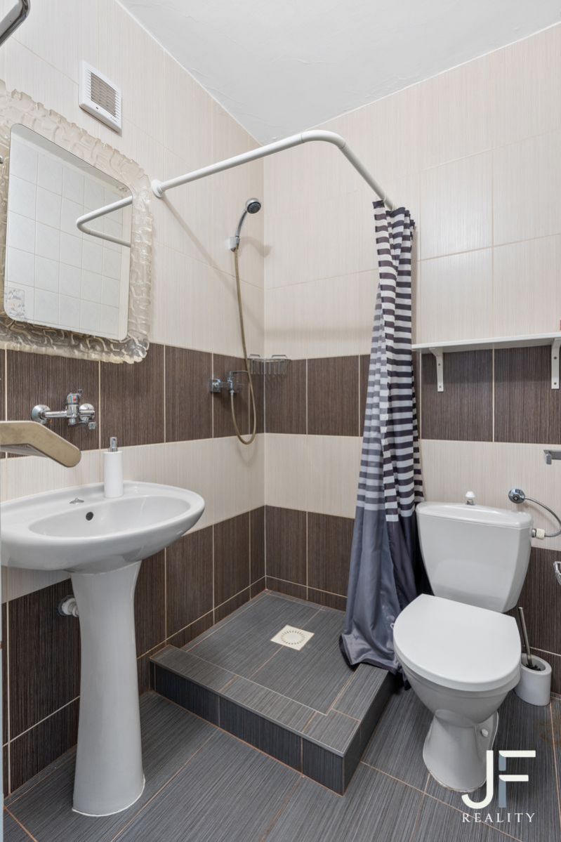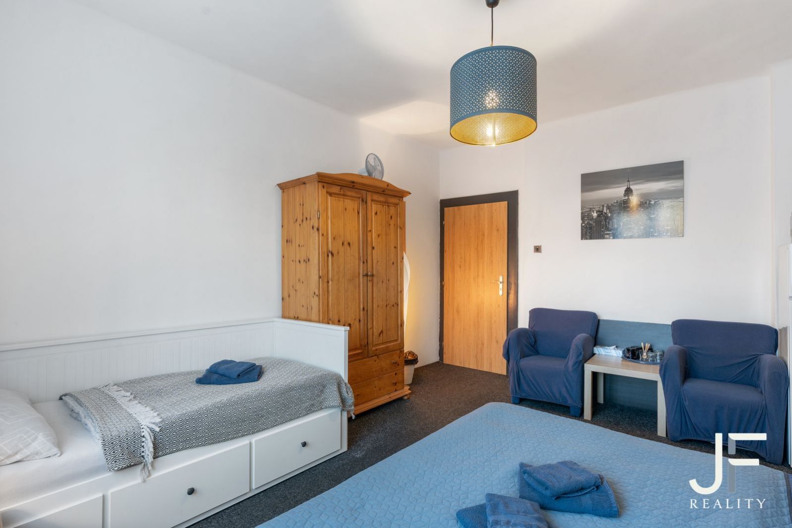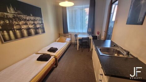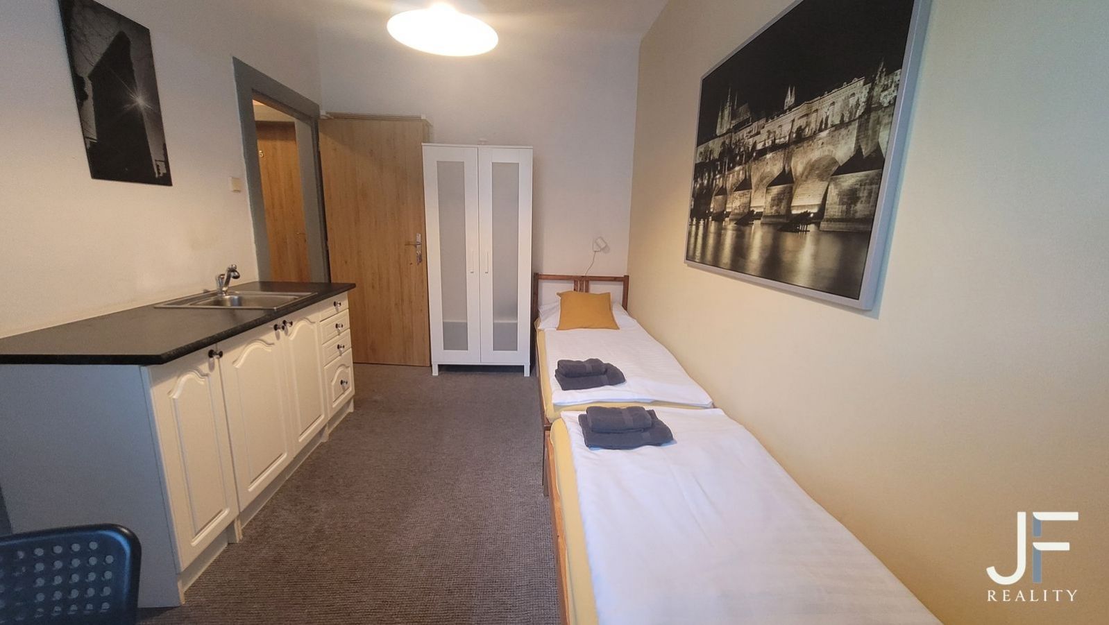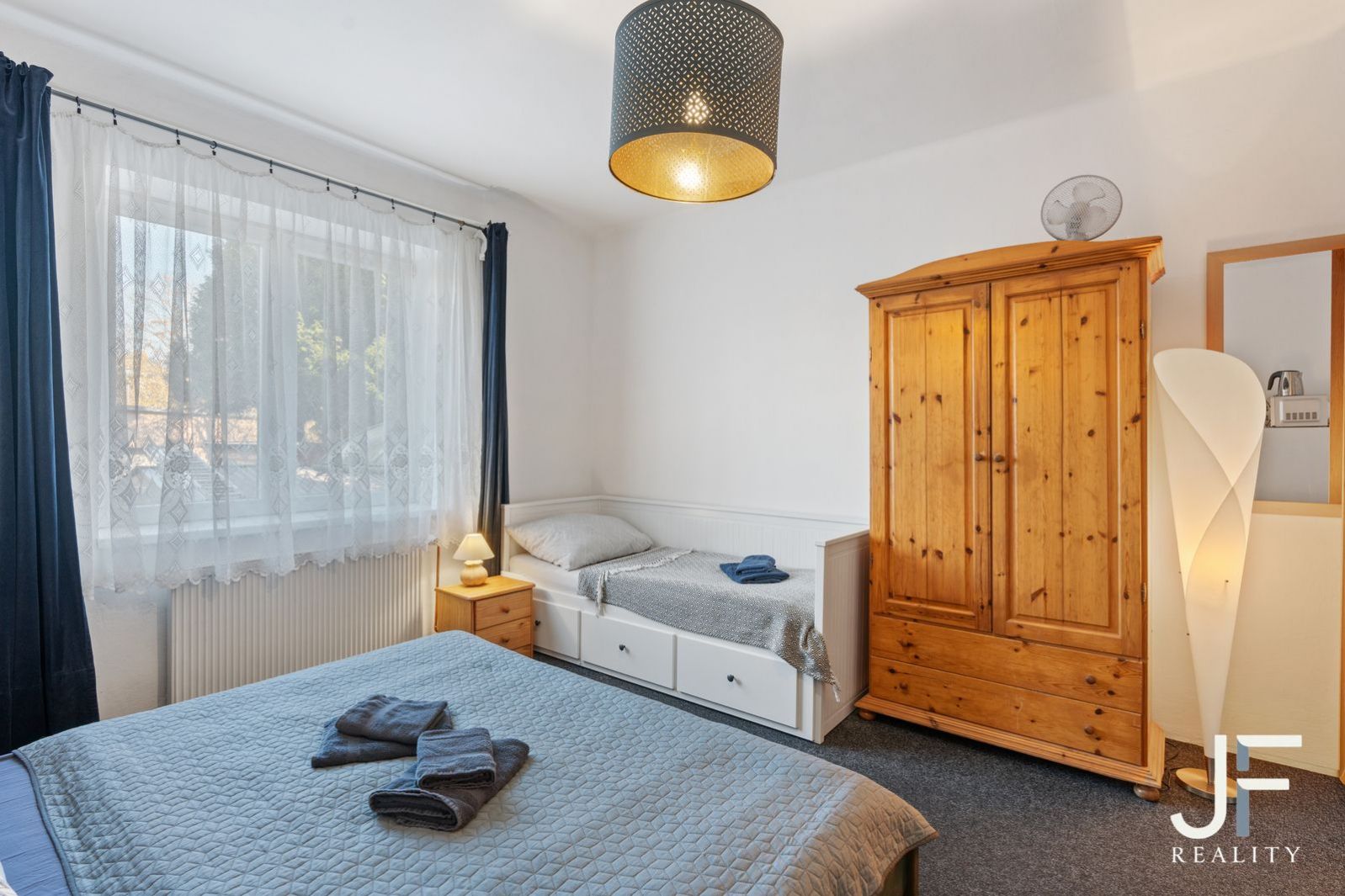 Dům v klidné a skutečně zastrčené ulici nabízí více možností. Jedná se vlastně o polovinu dvojdomu a polořadovou stavbu na konci slepé ulice. Vnitřní uspořádání je prakticky oddělené centrálním schodištěm, takže dům umožňuje kromě vícegeneračního bydlení i kombinaci bydlení a podnikání, čemuž napomáhá nově přistavěná recepce s anglickým dvorkem v přední části domu. Ačkoli je objekt kolaudovaný jako rodinný dům, v posledních letech byl reálně využíván jako penzion. Současně zde funguje také služba Zásilkovny. Na třech podlažích byly tři bytové jednotky dispozice 2+1, nyní je zde celkem osm pokojů krátkodobě i dlouhodobě pronajatých vytvořených jednoduchými stavebními úpravami. V suterénu domu je obytné zázemí pro správce, kotelna a může zde být dostatek skladovacích prostor pro obyvatele domu, nájemce či majitele. V domě probíhaly průběžné rekonstrukce jednotlivých jednotek i technických rozvodů. Byla realizována dostavba recepce a terasy (aktuálně bez kolaudace) a proběhla rekonstrukce topného systému, jehož základem je nový výkonný plynový kotel. Přední strana domu ja zateplená. Celkově je bydlení vhodné k modernizaci a rekonstrukci v rámci, které se opět vrátí stav se třemi jednotkami, které mohou být 2+kk nebo i 3+kk s jednou koupelnou. Objekt je však možné užívat i v současném stavu. Recepce byla dostavěna letos a vyžaduje drobné dokončovací práce, následně kolaudaci. k recepci náleží ještě malá kancelář a anglický dvorek před domem. Za domem se nachází dvorek s pergolou a plechovým zahradním domkem. Potenciál je využít prostor pro parkování 3-4 vozů. Lokalita má dobrou dopravní dostupnost i kompletní občanskou vybavenost. Zastávka metra Roztyly je 15 minut pěší chůzí, nejlepší ocbhodní centrum v Praze, OC Chodov je 20 minut pěší chůzí nebo 4 minuty autobusem... Energetický štítek je v přípravě... <a href="https://www.eurobydleni.cz/komercni-nemovitosti/pension/praha-4/obec-chodov/prodej/"><strong>Prodej penzionu Praha 4, Chodov</strong></a>