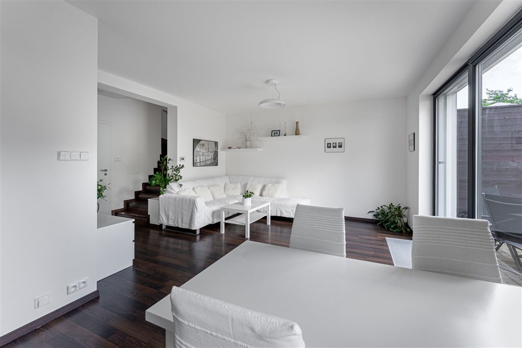 K dlouhodobému pronájmu na rok nabízíme krajní řadový rodinný dům na prestižní adrese Exnárova, Praha 4 Háje. Tato klidná lokalita v metropoli poskytuje vynikající dostupnost do centra města díky nedaleké stanici metra C, Háje. Nemovitost, postavená v roce 2019, se rozkládá na pozemku o celkové výměře 327 m2, přičemž zastavěná plocha činí 72 m2. Dům je rozložen do dvou podlaží s podlahovou plochou 110 m2. Obytná plocha 95 m2 je rozdělena do dispozice 4+kk, která zahrnuje čtyři pokoje a kuchyňský kout. Jižně orientovaná terasa o rozloze 16 m2 zajišťuje dostatek světla po celý den. K domu patří také prostorná zahrada o rozloze 179 m2, ideální pro relaxaci a rekreační aktivity, a 38 m2 před domem pro parkování dalšího automobilu. VYBAVENÍ A KOMFORT Kuchyně v elegantní bílé barvě je vybavena moderními vestavěnými spotřebiči, včetně lednice, mrazáku, varné desky, digestoře, elektrické trouby, mikrovlnné trouby a myčky. Dům je dále vybaven centrálním vysavačem a venkovními žaluziemi s elektrickým pohonem, které zajišťují maximální komfort a úsporu energie. Podlahy jsou laminátové ve všech pokojích, zatímco v kuchyni, koupelnách a na chodbě najdete černou dlažbu. TECHNICKÉ PARAMETRY Efektivní vytápění zajišťuje plynový kotel, který nabízí vysokou účinnost a nízké provozní náklady. Energetický certifikát třídy B podtrhuje energetickou úspornost domu. Dům je navíc napojen na veřejný vodovod a kanalizaci. LOKALITA A OBČANSKÁ VYBAVENOST Vynikající dopravní dostupnost je zajištěna díky blízkosti autobusové zastávky, metra a hlavních dopravních tepen. Veškerá občanská vybavenost je na dosah - od obchodů, škol a školek, po lékařská zařízení, restaurace a kulturní instituce. Tento rodinný dům je ideální volbou pro ty, kteří touží po moderním a dobře vybaveném domově v klidné rezidenční čtvrti Prahy, obklopené přírodou. Blízkost zeleně zajišťuje přístup k řadě parků a zelených ploch vhodných pro procházky, běh či cyklistiku. Milíčovský les a Hostivařská přehrada jsou v bezprostředním sousedství, poskytující bohaté možnosti pro relaxaci a aktivní odpočinek. PODMÍNKY PRONÁJMU Měsíční nájemné: 48 000 Kč Poplatky a služby: 7 500 Kč (z toho 2 500 Kč za vodu a odpad) Plyn a elektřina: Budou převedeny na nájemce a hradí se samostatně Kauce: 96 000 Kč Provize: 48 000 Kč Dům je volný k okamžitému nastěhování. Pro více informací nebo sjednání prohlídky mě neváhejte kontaktovat.