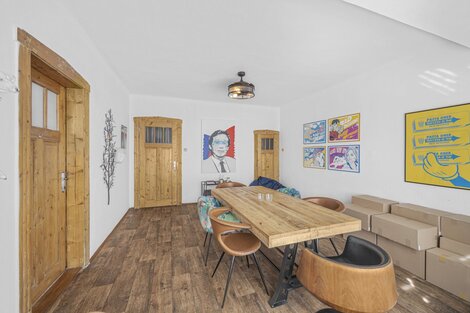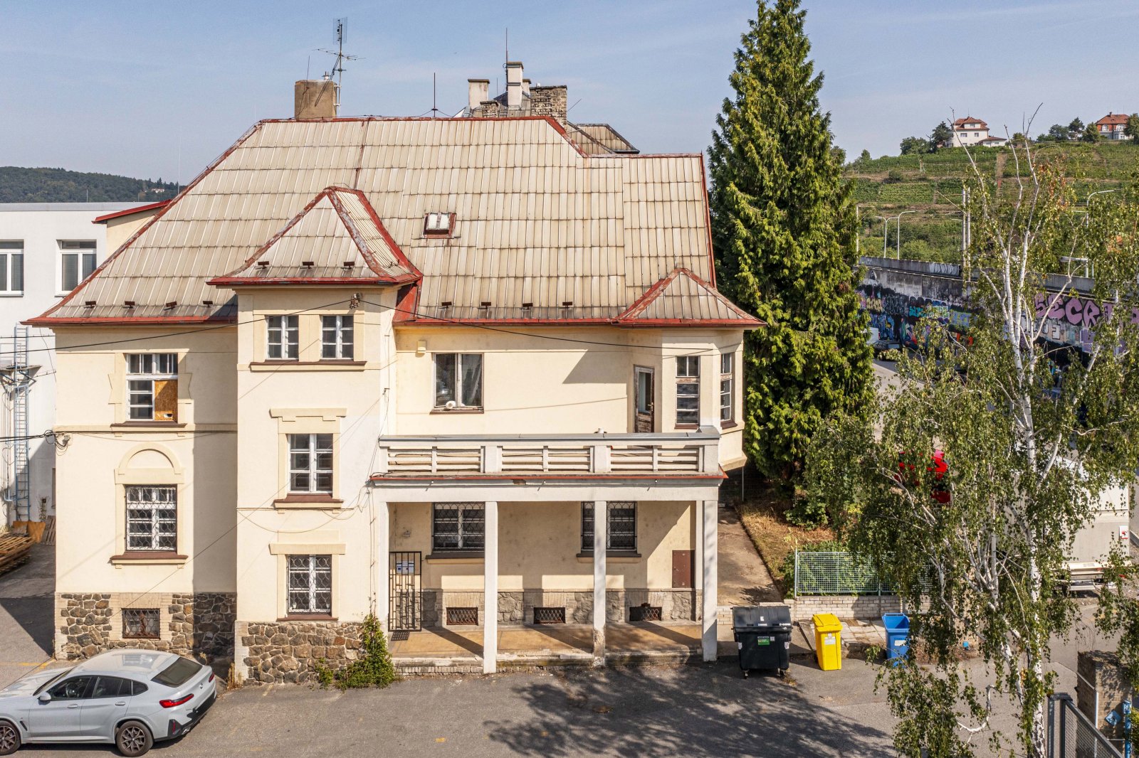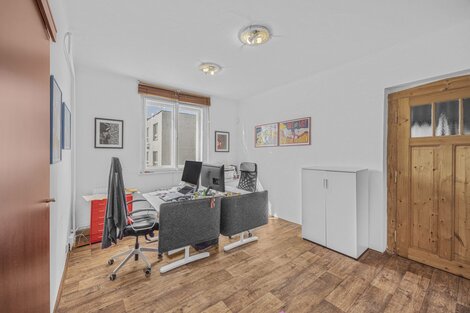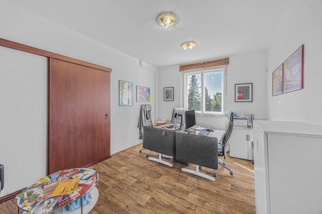 Nabízíme k prodeji nadpoloviční podíl prvorepublikové vily ve výšin 52 %, tedy majoritní většinu objektu s hlavním rozhodovacím právem. Objekt byl součástí výrobního závodu, jako kancelářská a obytná budova. Vila je vlastníky udržována ve velmi dobré kondici, nové rozvody, vody, elektřiny i plynu, současný stav je více než uspokojivý, viz. fotografie. Budova je celopodsklepena, celková plocha sklepních prostor činní 145,9 m2, zde je i umístěn centrální plynový kotel, který budovu vytápí. V prvním patře se nachází celkem 5 kanceláří o celkové výměře 108,5 m2 velikostně od 11 do 35 m2. Je zde rovněž vybudováno zázemí v podobě 2x WC, koupelny 4,4 m2 se sprchovým koutem a spíží. Ve 2. NP se nachází 6 kanceláří o výměrách od 10 do 21 m2 o celkové výměře 106,75 m2. Ve třetím podlaží jsou tři kanceláře 72,23 m2 a další půdní prostory o výměře 49 m2 k dalšímu využití. V každém patře je i menší kuchyně. Z prvního podlaží je vstup na velký balkon 26,5 m2. Parkování pro 3-4 vozy je možné zajistit na pozemku před budovou, náležící k prodeji. Budova je nyní dlouhodobě pronajata do 31.5. 2027. Objekt je vhodný, jako prostor k podnikání, možno do budoucna rozdělit na bytové jednotky, ubytovnu, hostel atd. Skvělá investiční příležitost v Praze, doporučuji prohlídku.