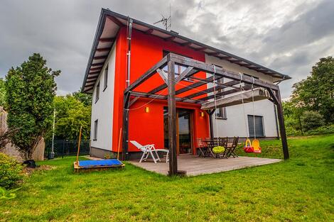 K pronájmu nabízíme rodinný dům v klidné lokalitě Prahy 6 Suchdol. Ideální pro rodinu hledající dlouhodobé a kvalitní bydlení v klidné části Prahy. Jedná se o stavbu z roku 2015 postavenou v pasivním standardu, která splňuje nároky na úsporné a komfortní bydlení. Dispozice: V přízemí se nachází prostorný obývací pokoj s plně vybavenou kuchyňskou linkou (spotřebiče značky Electrolux), jeden další pokoj, koupelna s toaletou, technická místnost a vstup do garáže (zateplená vrata Hormann). Z obývacího pokoje je přímý vstup na zahradu. V patře jsou k dispozici čtyři samostatné pokoje (každý s vestavěnými skříněmi), koupelna s vanou, samostatné WC a vstup na půdu s možností dalšího úložného prostoru. Technické vybavení: Dřevěná třívrstvá podlaha (Eiche Rustikal) Dřevěná trojskla s elektricky ovládanými žaluziemi v celém domě Podlahové vytápění v celém domě Vytápění a ohřev vody: teplovodní krbová vložka Aquador Styl RS 19, 4 solární panely, zásobník IQ TAT 600 Rekuperační jednotka Atrea Duplex Zabezpečení Jablotron Dům se pronajímá bez vybavení, tzn. bez volně stojícího nábytku. Na fotografiích je dům ještě zařízený, ale při předání bude vyklizený. Kuchyňská linka a vestavěný nábytek zůstávají součástí vybavení. Zálohy na služby činí 3.000Kč měsíčně pro čtyřčlennou domácnost. Elektřina se převádí na nájemníka. Celkové měsíční náklady by neměly přesáhnout 6.000,- Kč. Občanská vybavenost: V docházkové vzdálenosti je mateřská škola, základní škola se nachází nedaleko. Lokalita je dobře dostupná autem i MHD - 7 minut pěšky na autobusovou zastávku K Drsnici ze které jste za 20 minut na Dejvické, v blízkosti se nachází také Česká zemědělská univerzita. Dům je k dispozici ihned. Pro více informací mne neváhejte kontaktovat.
