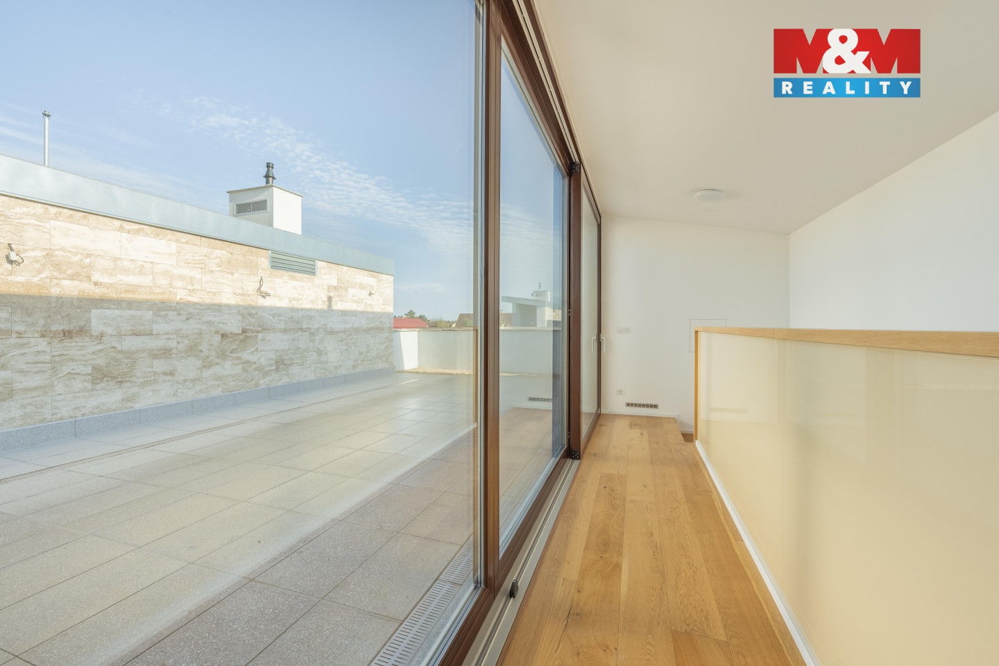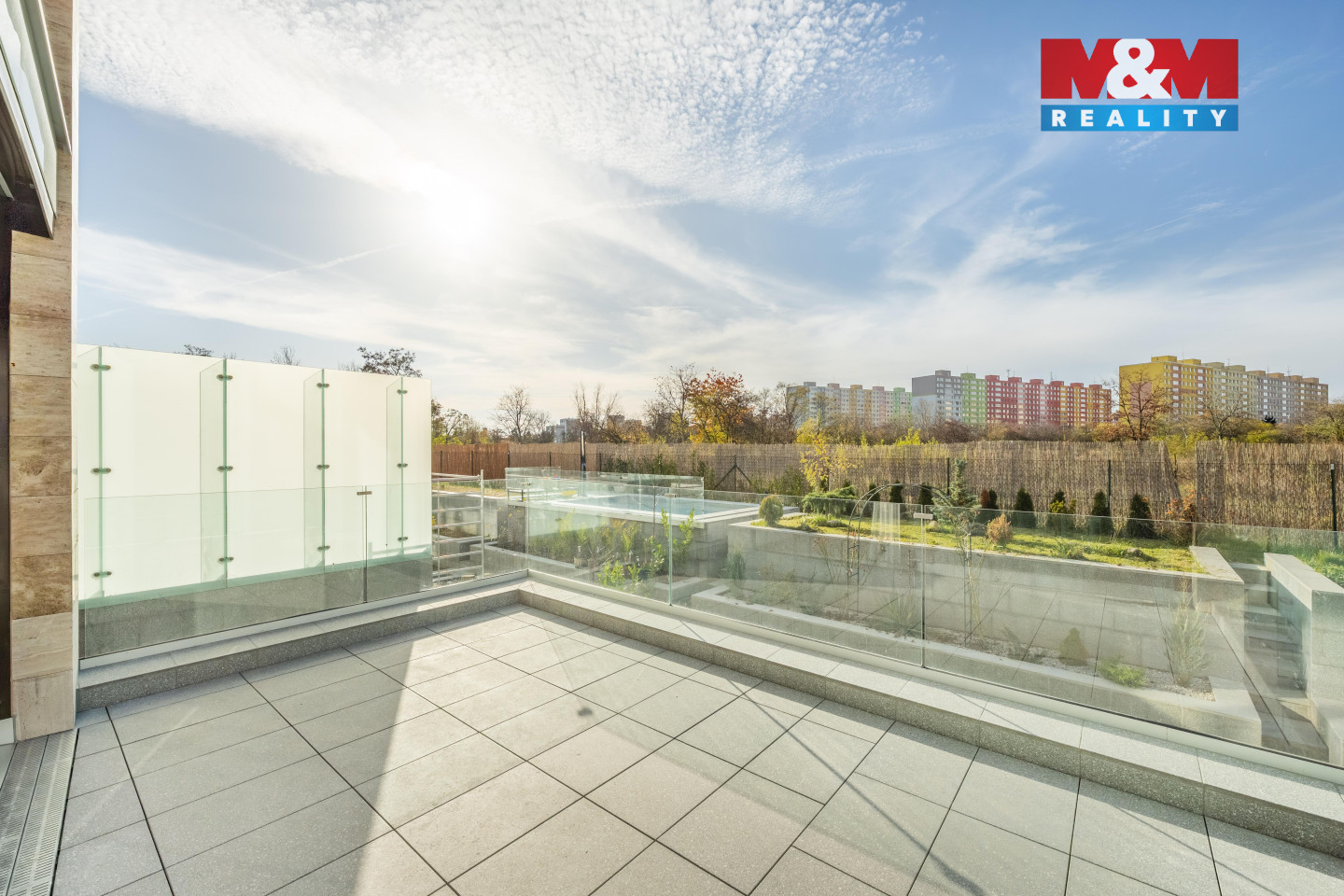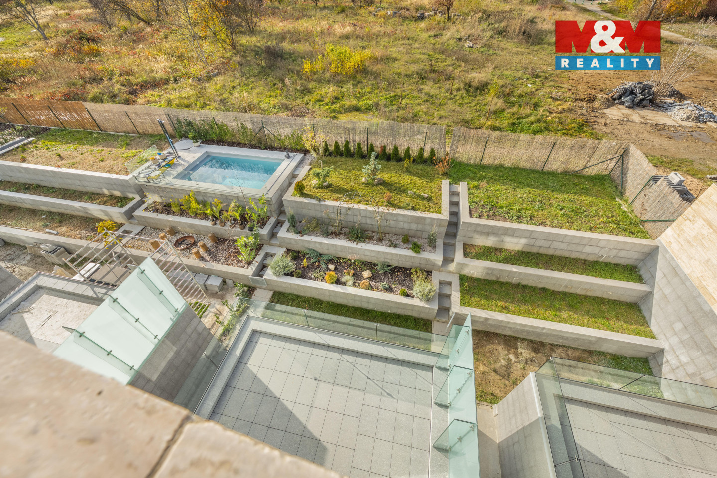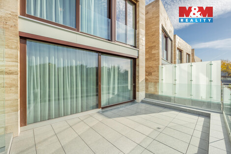 Nabízíme naprosto výjimečný řadový rodinný dům ve velmi vyhledávané části Prahy - Libuši. Tato novostavba nabízí čtyři nadzemní podlaží s celou užitnou plochou 279m2. Moderní a prostorný interiér zahrnuje sedm místností a čtyři koupelny s toaletou. Dům je postaven z prémiových materiálů a je vybaven vestavěnými skříněmi, centrálním vytápěním, bezpečnostním systémem, přípravou pro venkovní elektrické žaluzie. K dispozici jsou dvě terasy - prostorná střešní terasa o ploše 84 m2 a další terasa v prvním patře o velikosti 38 m2 odstíněná od sousedních teras. Zahrada za domem má rozlohu 96 m2, předzahrádka před domem má pak 32 m2. Fasáda celého domu je obložena kamenným obkladem z travertinu. Dvě podzemní garážová stání zajišťují komfortní parkování a vstup z garáže přímo do domu. Nemovitost se nachází v klidné části uzavřeného areálu hned vedle budoucí stanice metra C a je připravena k okamžitému nastěhování. Nepropásněte tuto jedinečnou příležitost. Energetický štítek B.