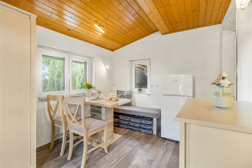 REZERVOVÁNO Toužíte po místě, kde si skutečně odpočinete, a přitom si zachováte dobré spojení s městem? Nabízím k prodeji útulnou chatu v malebné a velmi žádané chatové osadě Třešňovka ve Velké Chuchli - lokalitě, která spojuje kouzlo přírody s pohodlnou dostupností do centra Prahy, a to jak MHD, tak autem. Tato podsklepená zděná chata s obytným podkrovím stojí na pozemku o celkové výměře 599 m2, z toho udržovaná zahrada s ovocnými stromy tvoří 566 m2. Perfektní zázemí pro relaxaci, rodinné posezení, grilování nebo klidné zahradničení. Chata nabízí 45 m2 užitné plochy rozdělené mezi přízemí a obytné podkroví. V přízemí se nachází obývací prostor s kuchyňským koutem, koupelna, toaleta, předsíň a přímý vstup na zastřešenou terasu (10 m2) - ideální místo pro vychutnání ranní kávy na čerstvém vzduchu s pohledem do zahrady. V patře najdete ložnici se vstupem na zasklenou lodžii (3,5 m2) s krásným výhledem na okolní přírodu. Sklep o velikosti 20 m2 poskytuje praktické technické zázemí a úložný prostor. Chata je napojena na veřejný vodovod, elektřinu a odpad je sveden do jímky. O tepelný komfort se starají kamna na tuhá paliva a klimatizace, která v létě příjemně ochladí a v zimě doplní vytápění. Teplá voda je zajištěna bojlerem. Na pozemku se dále nachází kůlna na zahradní nářadí a dvě vlastní parkovací místa, což je v této oblasti skutečnou výhodou. Osada Třešňovka je známá svou klidnou atmosférou, okolní přírodou a jedinečným duchem sousedství. Oblast je pečlivě udržovaná, obklopená lesy a ideální pro milovníky turistiky, cyklistiky či prostého ticha. Ať už hledáte víkendové útočiště, nebo celoroční bydlení v přírodě, tato nemovitost vám nabídne vše potřebné. Chceteli více informací nebo si domluvit osobní prohlídku, neváhejte se ozvat. Tohle místo vás chytí za srdce.