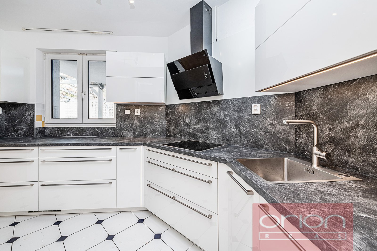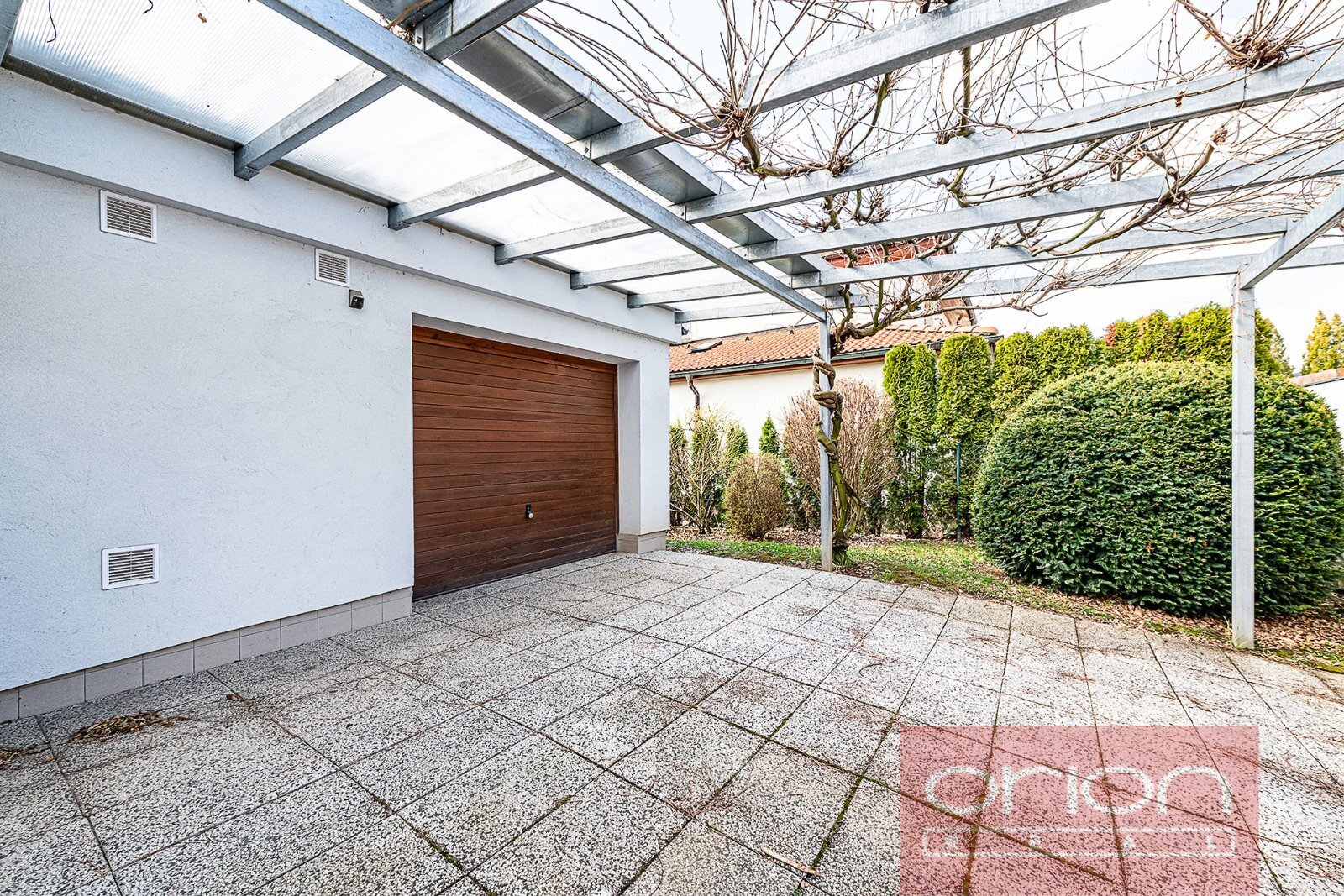 Samostatně stojící rodinný dům 6+1 se zahradou a garáží v Praze 5 - Jinonice, v pěší vzdálenosti do Německé školy DSP, do nákupního centra Galerie Butovice, na stanici metra a autobusu. Tento prostorný rodinný dům má plochu 312 m2 a nabízí v přízemí velký obývací pokoj s jídelnou se vstupem na zahradu, kuchyň s novou kuchyňskou linkou a s novými spotřebiči, zimní zahradu, samostatný pokoj, koupelnu s toaletou, dále v 1. patře jsou 3 ložnice, koupelna, šatna a balkon. V suterénu je další pokoj a koupelna. Dům je nově zrekonstruovaný, má dřevěné podlahy a dlažbu s podlahovým topením. Garáž je pro 2 auta. Velká udržovaná zahrada 670 m2 je s okrasným jezírkem na dešťovou vodu. Dům je vybaven vysokým technickým standardem, zejména v ekologickém směru. Rezidenční lokalita Praha 5 - Jinonice poskytuje klidné bydlení v blízkosti přírodní rezervace Vidoule, s veškerou občanskou vybaveností a výborným dopravním spojením.