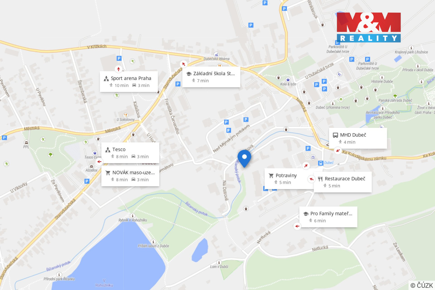 Nabízíme k prodeji rodinný dům v klidné části Prahy 10 - Dubeč, situovaný na pozemku o celkové výměře 487 m2. Nemovitost je vhodná jak pro vícegenerační bydlení, tak i pro rozdělení na dvě samostatné jednotky. V přízemí domu se nacházejí dvě kuchyně, dvě koupelny s toaletou a tři obytné pokoje. Z obou stran domu vedou samostatná schodiště do podkroví, kde jsou umístěny další tři ložnice. Vytápění je zajištěno plynovým kotlem nebo kotlem na dřevo. Dům je v udržovaném stavu, avšak vyžaduje částečnou rekonstrukci. Součástí nabídky je zahrada se skleníkem, ideální pro relaxaci i pěstování. Další pozemek o výměře 253 m2 je dlouhodobě v nájmu od obce a rozšiřuje možnosti využití venkovního prostoru. Parkování je zajištěno přímo na pozemku. Městská část Dubeč nabízí klidné bydlení na okraji Prahy s kompletní občanskou vybaveností, výbornou dopravní dostupnost do centra Prahy s výhodou blízkosti přírodního parku a zelených ploch. Pro více informací kontaktujte makléře.