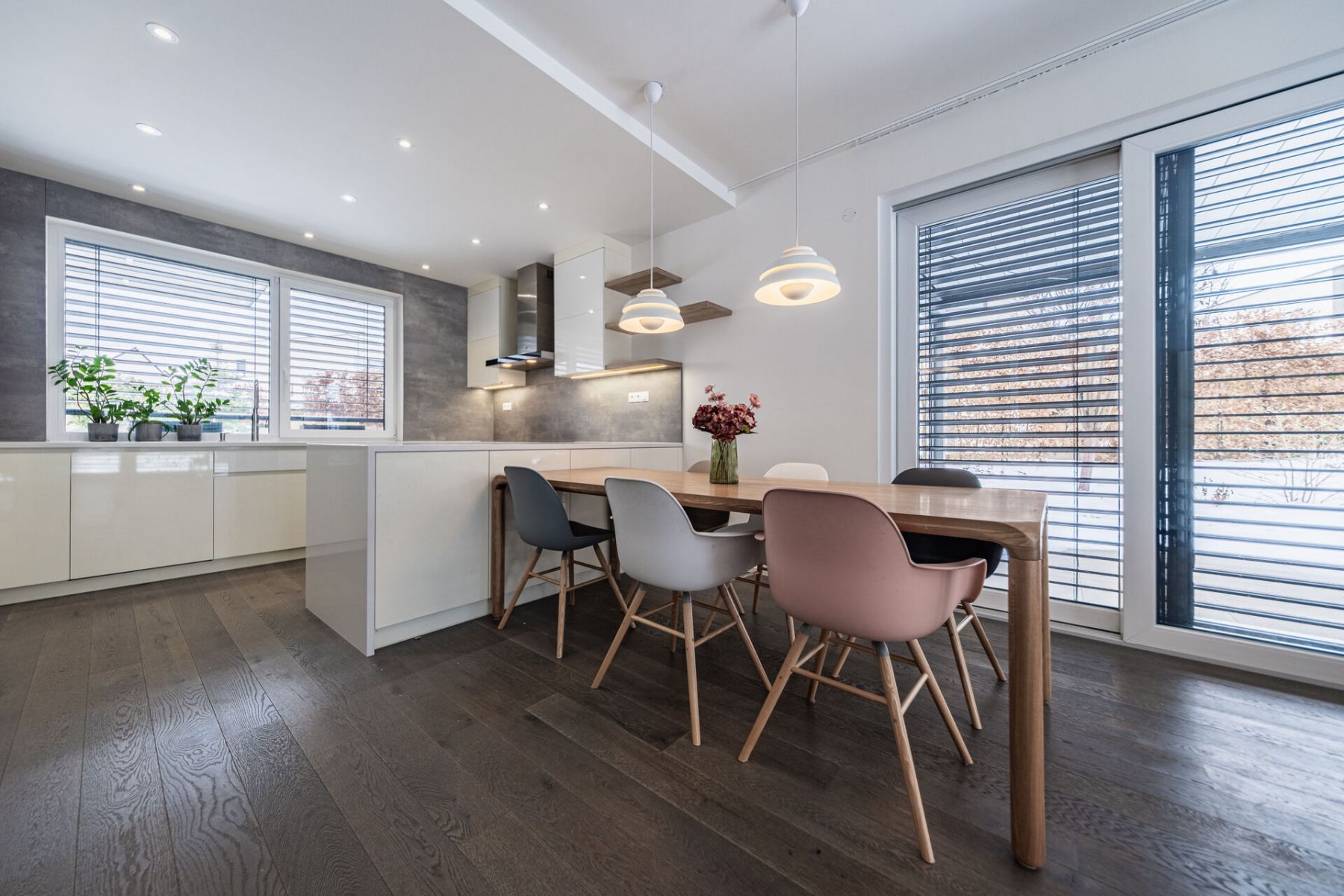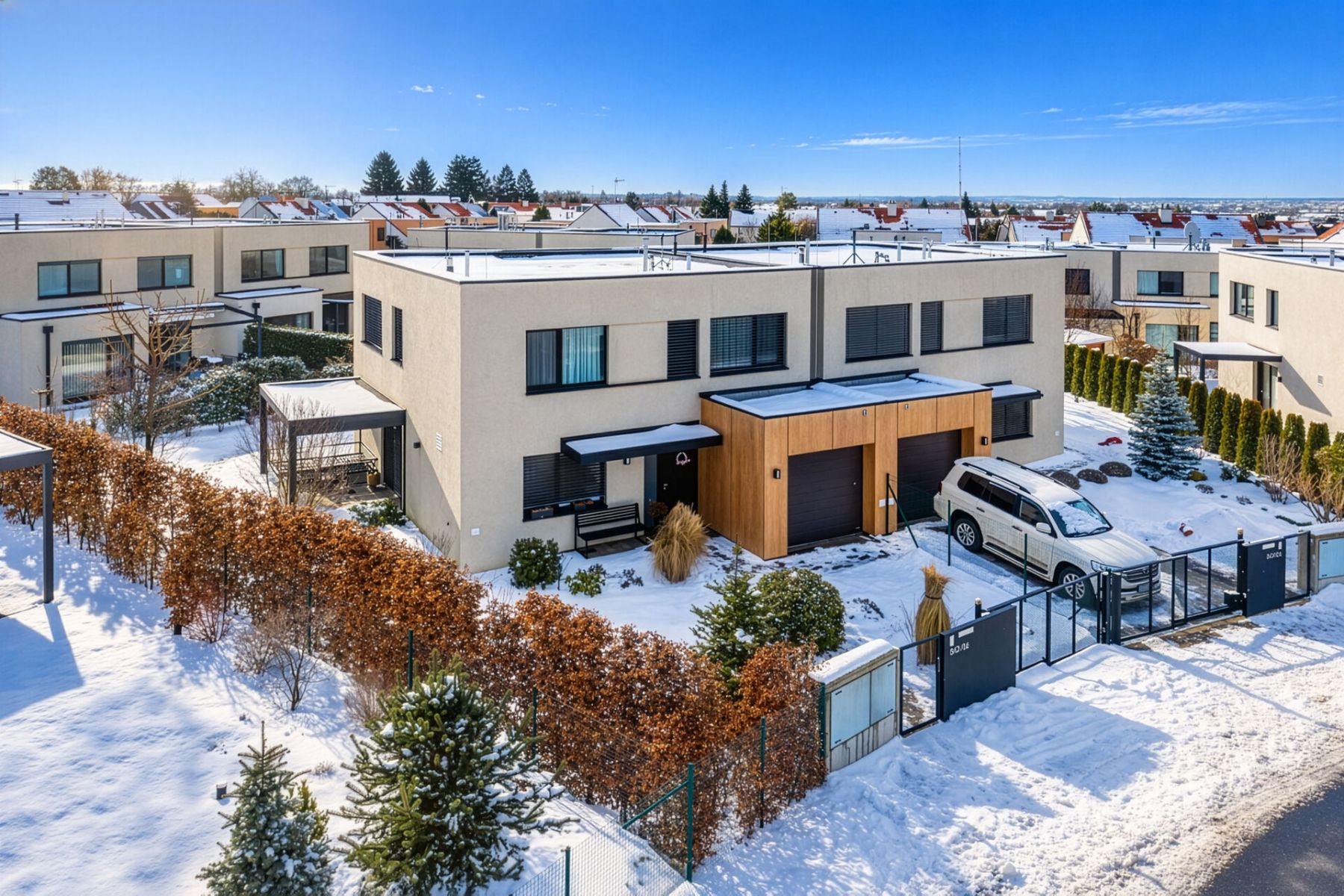 Dovolujeme si vám exkluzivně nabídnout pronájmu výjimečný rodinný dům, který potěší každého, kdo hledá moderní architekturu, promyšlené detaily a skutečný komfort rodinného bydlení. Dům se nachází v nově vzniklé rezidenční čtvrti v Praze 8 - Březiněvsi. Tento dvoupodlažní dům o dispozici 5+kk byl kolaudován v roce 2019. Celková užitná plocha 157,63 m, terasa 10 m a vzrostlá zahrada vytvářejí ideální prostor pro rodinný život. Dispozice domu: 1.NP vás přivítá elegantním zádveřím (6,92 m) a halou (5,88 m). Srdcem domu je velkorysý obývací pokoj s kuchyní a jídelnou (36,52 m). Dále zde najdete koupelnu se sprchovým koutem a toaletou, technickou místnost, sklad a garáž pro jeden automobil (18,48 m). Samozřejmostí je podlahové vytápění v celém 1. NP. 2. NP nabízí soukromí a klid: ložnici s vlastní koupelnou, sprchovým koutem a šatnou, dva dětské pokoje / pracovny, další koupelnu s vanou i sprchovým koutem, samostatnou pracovnu a centrální chodbu. Interiér domu je kompletně řešen na míru truhlářem od vestavěných skříní, přes elegantní úložné prostory v každém koutě domu až po luxusní kuchyňskou linku s moderními technologiemi a vinotékou, která potěší i náročné milovníky vaření. Vše je sjednoceno do jemných zemitých tónů, které působí klidně, harmonicky a nadčasově. Z obývacího pokoje je přímý vstup na terasu s bioklimatickou pergolou, vybavenou screenovými roletami na dálkové ovládání. Technická místnost je navržena s důrazem na praktičnost. V celém domě jsou venkovní žaluzie na dálkové ovládání a v oknech sítě proti hmyzu, vytápění zajišťuje plynový kotel. Dům má centrální zabezpečení napojené na pco. Po celém domě je dřevěná podlaha ve vysokém standardu. V zahradě je pak zahradní domek, který slouží jako další úložný prostor. Dům je připraven pro nové obyvatele a je možné se tak ihned nastěhovat. Hledáme nájemníky, kteří mají zájem o dlouhodobé bydlení a budou zde spokojeně žít. Majitelé požadují nájemné ve výši: 59.000,- Kč + zálohy na vodu. Elektřina plyn se převádí na nájemníka. Kauci ve výši: 100.000,- Kč. Provize pro rk činí jeden měsíční nájem bez energií. Březiněves patří k vyhledávaným částem Prahy 8 nabízí klidné rezidenční bydlení v zeleni, přátelskou komunitu a zároveň výbornou dostupnost do centra Prahy. V okolí najdete školky, školy, obchody, restaurace, sportovní vyžití i krásné procházky do přírody. Je to místo, kde se žije pomaleji, bezpečněji a s pocitem domova ideální pro rodinu, která chce spojit městský komfort s atmosférou menší čtvrti. Tento dům není jen o metrech čtverečních. Je o pocitu, že se večer vracíte tam, kde je klid, teplo a harmonie. Pokud hledáte výjimečný pronájem bez kompromisů, tohle je místo, které stojí za osobní prohlídku.