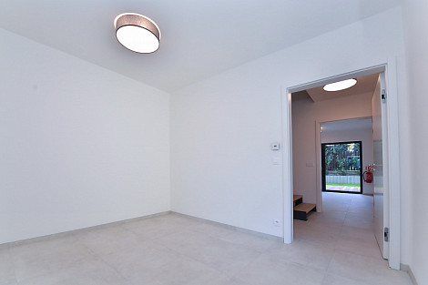 Novostavba ŘRD 7+kk + terasa + balkon + garáž a parkovací stání v domě - užitná plocha 220 m2, který se nachází na pozemku o celkové výměře 132 m2 v Praze 4 - Háje, přímo u Hostivařské přehrady s pláží a parkem. Jedná se o dosud neobývanou novostavbu kolaudovanou v roce 2025. V domě jsou 4 samostatné ložnice, 2 x koupelna se sprchovým koutem a vanou, 3x WC, obývací pokoj se vstupem na balkon, kuchyň s jídelnou, moderní kuchyňská linka s vestavěnými spotřebiči - lednice s mrazákem, myčka, horkovzdušná trouba, indukční varná deska, mikrovlnka, digestoř, prádelna, prostorná předsíň. Podlahové vytápění a teplou vodu zajišťuje vlastní tepelné čerpadlo. Okna jsou s izolačním 3 sklem (v 1.NP s bezpečnostním zasklením), na všech oknech předokenní žaluzie na dálkové ovládání, videotelefon v obou patrech, příprava na klimatizaci. V celém domě jsou použity pouze kvalitní a moderní materiály - na podlahách třívrstvé dřevěné dubové podlahy, dlažba, obklady, vypínače Schneider, veškeré zařizovací předměty jsou od firem Laufen, Grohe a Franke, datové zásuvky ve všech obytných místnostech. K domu přísluší zahrada s podzemní nádrží na dešťovou vodu, dřevěná venkovní terasa je z materiálu Thermowood s venkovní zásuvkou a nezámrzným kohoutem na vodu. Samostatný vjezd pouze pro rezidenty 5 RD přes závoru na dálkové ovládání. Poloha RD přímo u Hostivařské přehrady s pláží, volejbalovým hřištěm a parkem s cyklostezkami a tenisovými kurty zajišťuje sportovní vyžití pro každého vyznavače sportu. V docházkové vzdálenosti je stanice metra Háje, stanice autobusů, mnoho obchodů a restaurací, několik základních škol a školek, banky a zdravotní střediska. V tomto RD jste blízko krásné přírody, ale máte i veškeré vymoženosti moderního bydlení. K nastěhování cca od konce ledna 2026.