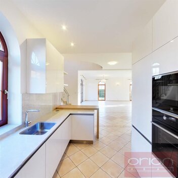 Nabízíme k pronájmu reprezentativní vilu 5+kk ve vyhledávané lokalitě v Praze 6 - Nebušice. Dům je součástí uzavřeného rezidenčního komplexu Villas Šárka v těsném sousedství mezinárodní školy ISP. Celková obytná plocha domu 243 m2 nabízí v přízemí vstupní halu se šatnou, prostorný obývací pokoj s krbem a vstupem na terasu, plně zařízenou kuchyň, prádelnu s pračkou a sušičkou, toaletu a komoru. V 1. patře jsou 4 ložnice (2 ložnice mají vlastní koupelnu), třetí koupelna je s rohovou vanou, bidetem a toaletou, samostatná toaleta a vstup na terasu. K domu patří udržovaná zahrada o velikosti 605 m2 s vyhřívaným bazénem s podvodním osvětlením a protiproudem. K vybavení domu patří klimatizace, podlahové vytápění, plynový kotel, zabezpečovací systém s připojením na pult centrální ochrany, prostorná terasa s elektricky ovládanou markýzou, garáž pro 2 auta. Oblíbená lokalita Nebušice, v blízkém okolí je základní i mateřská škola, zdravotní středisko, obchody, sportovní hala a tenisové centrum, přírodní rezervace Divoká Šárka. Veškerou další infrastrukturu poskytuje nedaleké centrum Dejvic. Dobrá dopravní dostupnost MHD a autem do centra i na letiště. Pouhých 8 minut jízdy autem ke stanici metra a tramvají Bořislavka. K dispozici od 1.4. 2026, prohlídky po dohodě.