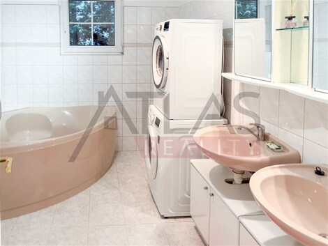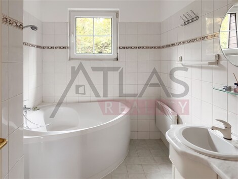 Pronájem samostatného rodinného domu 7+1, 365 m2 Praha 6 Nebušice. Dům je nezařízený nábytkem. Obývací pokoj s jídelnou, zařízená kuchyň (elektrický sporák se sklokeramickou varnou deskou, dvě lednice, mrazák a myčka nádobí), 5 ložnic, 2 koupelny, 2 WC, vnitřní krb, garáž se dvěma parkovacími místy. Nemovitost má plastová okna s bezpečnostní mřížkou a bezpečnostními roletami. Otevírání garážových vrat a plotové branky je řešeno automatickým dálkovým ovládáním. Na podlaze dřevěná mozaika. Celý rodinný domek je úplně podsklepen. Vyhřívaný krytý bazén s plně automatickou odvlhčovací jednotkou, s přístupem z obývacího pokoje a venkovní terasy. Teplotu vody je možno temperovat až na 30 oC. V celém objektu je nainstalováno elektronické zabezpečovací zařízení s možností připojení na pult centrální ochrany, telefon, satelit, pračka. Vytápění nemovitosti je řešeno elektrickým přímotopem. Občanská vybavenost: prádelna, mandl, pošta, restaurace, obchody, městský úřad, ordinace praktického lékaře, dětský lékař, obvodní lékař, pneuservis, autoškola, sportovní hala, tenisové kurty, mateřská školka, základní škola, jezdecký oddíl, mezinárodní mateřská školka Global Concepts, mezinárodní škola pro anglicky mluvící děti, která je součástí tzv. "Malé Šárky". V těsné blízkosti se nachází chráněná krajinná oblast "Divoká Šárka" s koupalištěm, četnými cyklistickými a turistickými stezkami. Provize jeden nájem + DPH