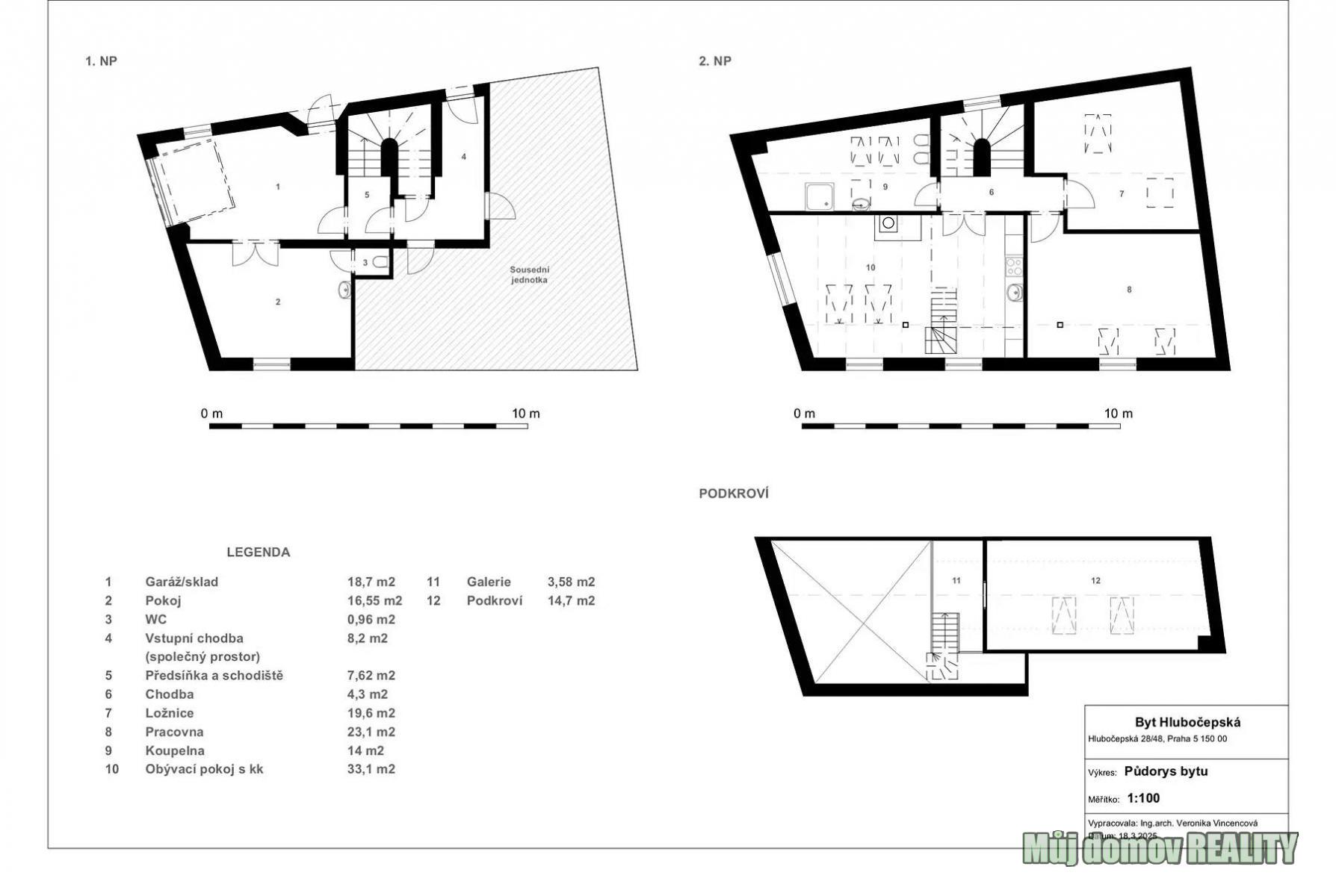 ## Prodej rodinného domu 6+kk, 156 m, pozemek 127 m Hlubočepská, Praha Hlubočepy. Nabízíme k prodeji **variabilní rodinný dům o užitné ploše 156 m**, situovaný v klidné části Praha 5 Hlubočepy. Nemovitost je ideální jak pro **vícegenerační bydlení**, tak jako **investiční příležitost**. Celková cena: **15 490 000 Kč + provize RK** ### Dispozice a využití Dům se skládá ze **3 jednotek**, přičemž předmětem prodeje jsou **2 jednotky (cca 79 % domu)**, které lze využívat samostatně nebo jako jeden celek: ### Jednotka č. 1 byt 4+kk (cca 120 m) Umístěna v 1. patře a podkroví: * předsíň, schodiště, chodba * obývací pokoj s kuchyňským koutem * ložnice, pracovna * koupelna s WC * další ložnice v podkroví ### Jednotka č. 2 přízemí (36,21 m) V KN vedena jako dílna/provozovna, aktuálně rekonstruována jako obytný prostor: * zateplený prostor s vlastním vstupem z ulice nebo přes garážová vrata * samostatná místnost s WC a umyvadlem (možný vlastní vstup z ulice) Tato jednotka nabízí **výborný investiční potenciál** lze ji oddělit a pronajímat jako kancelář, obchod, provozovnu či sklad. ### Technické informace * vytápění plynovým kotlem + krb * radiátory * veřejná kanalizace, vodovod, plyn * elektřina 230 V * dům po rekonstrukci, ve velmi dobrém stavu * koupelna s vanou i sprchovým koutem * vybavená kuchyňská linka a spotřebiče * garáž + možnost parkování před domem * bez SVJ * bez právních vad Energetická třída: **E nehospodárná** ### Lokalita & občanská vybavenost Velkým benefitem je bezprostřední blízkost přírody pár minut chůze se nachází **Prokopské údolí**, Dalejský potok a Děvín, ideální pro procházky, sport i relax. Zároveň máte v okolí kompletní občanskou vybavenost: * mateřská i základní škola * potraviny * restaurace, pizzerie, kavárna * wellness centrum * další služby v docházkové vzdálenosti ### Dopravní dostupnost * autobusová zastávka přímo u domu * vlak cca 150 m * tramvaj cca 1,5 km * autem cca 5 minut na metro Smíchovské nádraží Výborná dostupnost do centra města při zachování klidného rezidenčního charakteru lokality. ### Shrnutí 156 m užitné plochy 6+kk možnost odděleného využití jednotek garáž investiční potenciál blízkost přírody kompletní občanská vybavenost skvělá dopravní dostupnost **Kontakt na sjednání prohlídky:** Realitní kancelář: **Můj domov REALITY** Makléř: **Lidiya Savynets** Viber | WhatsApp | Telegram *Těším se na Vaši zprávu nebo telefonát.* <a href="https://www.eurobydleni.cz/byty/1_kk/brno/obec-kralovo-pole/pronajem/"><strong>Pronájem bytu 1+kk Brno-město, Královo Pole</strong></a>