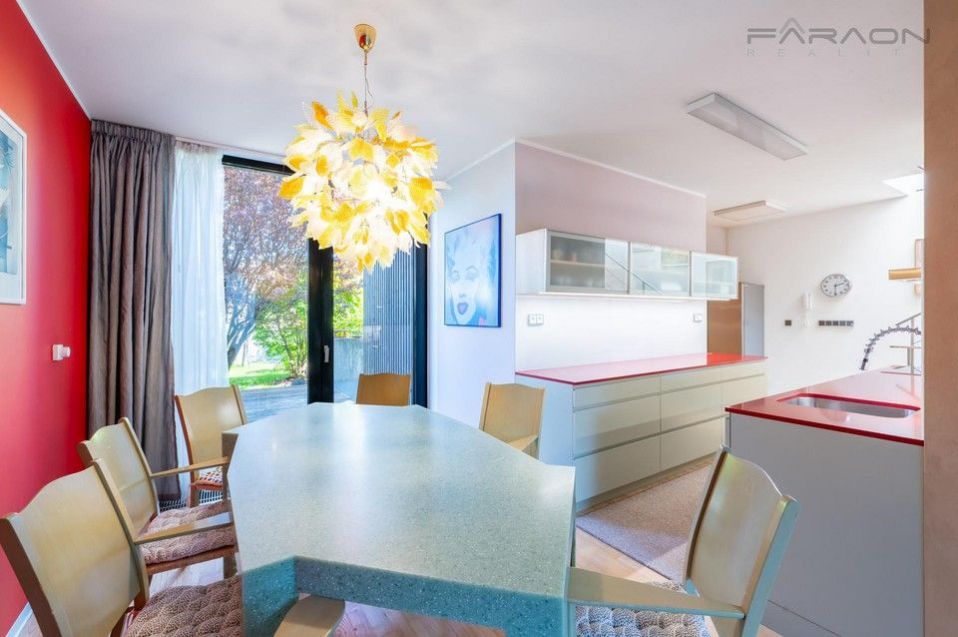 Prodej solitérní, podsklepené třípodlažní vily 4+kk (278,1 m) železobetonové konstrukce, která je součástí uzavřeného a bezpečného areálu s 24/7 recepcí a ostrahou, který zajišťuje maximální soukromí a klid v prestižním a oceňovaném rezidenčním projektu Na Krutci v Praze 6 Vokovicích v pěším dosahu Šáreckého údolí. Nadčasová architektura vily je dílem renomovaného studia KUBA & PILAŘ architekti. I přes kompaktní velikost nabízí pozemek kolem vily krásně upravenou zahradu s pečlivě vybranou vzrostlou zelení, která příjemně doplňuje architekturu domu a poskytuje pocit soukromí i zeleného rámce pro každodenní bydlení. Zahrada je navržena s důrazem na estetiku i funkčnost a vytváří útulný prostor pro posezení, odpočinek či drobné zahradničení. Její upravený charakter dodává vile harmonický a reprezentativní dojem. Mimořádně atraktivní lokalita nabízí výjimečné propojení městského komfortu s přírodou v docházkové vzdálenosti se nachází přírodní rezervace Šárecké údolí a jen pár minut chůze je stanice metra A Nádraží Veleslavín, díky čemuž je centrum města snadno a rychle dostupné. Rezidenti mohou využívat soukromé relaxační centrum se širokou nabídkou služeb: virtuální golf, fitness, wellness, tenisové kurty či restauraci s letní zahrádkou. Vila se rozkládá ve třech podlažích a nabízí promyšlené a velkorysé uspořádání pro pohodlné rodinné bydlení. Vstupní (přízemní) podlaží tvoří zádveří se šatnou, samostatná toaleta pro hosty s umyvadlem a prostorný obývací pokoj propojený s jídelní částí a kuchyní. Z obývací zóny je přímý vstup na hlavní terasu orientovanou do soukromé zeleně, která poskytuje klid a intimitu. Druhá terasa navazující na jídelnu slouží jako příjemné místo pro venkovní posezení. První (horní) podlaží představuje privátní obytnou část domu dvě komfortní ložnice, dvě koupelny (jedna s vanou) a prostorná terasa, která nabízí klidné zázemí s výhledem do zeleně. Suterénní podlaží je výjimečně prostorné a funkčně navržené. Najdete zde technické zázemí domu (prádelna, žehlírna, sklad), samostatný pokoj pro hosty a velkou místnost využitelnou jako šatna či hobby místnost. Součástí je také přímý vstup do garáže. Vila je vybavena kuchyňskou linkou na míru se zabudovanými spotřebiči, dřevěnými okny s izolačními skly a kvalitním plynovým kondenzačním, turbo kotel zn.Buderus zajišťujícím úsporné vytápění. Interiér nabízí dostatek úložných prostor díky praktickým vestavěným skříním na míru, které elegantně doplňují celkový design domu. Součástí prodeje je rovněž kompletní vybavení dle aktuální fotodokumentace. Komfortní parkování je zajištěno prostornou garáží přímo v suterénu domu, která poskytuje bezpečné a pohodlné zázemí. Díky uzavřenému a dobře organizovanému charakteru celého rezidenčního areálu je navíc možné bez problémů zaparkovat také přímo před domem, což zajišťuje flexibilitu pro návštěvy i každodenní provoz. Tato výjimečná nemovitost představuje ojedinělou příležitost pro ty, kteří hledají nadstandardní rodinné bydlení v prestižní a bezpečné lokalitě. Nabízí kombinaci nadčasové architektury, praktického uspořádání, upravené zahrady a komfortního zázemí. Bonusem je uzavřený areál s možností sportovního a relaxačního vyžití v bezprostřední blízkosti domu od tenisu přes fitness až po restauraci s letní zahrádkou. Info o ceně u makléře RK. Poplatky za správu 2 508,- + energie ID nemovitosti HMA2028-0002. <a href="https://www.eurobydleni.cz/pozemky/stavebni-pozemek-bydleni/praha-10/obec-vrsovice/prodej/"><strong>Prodej stavebního pozemku Praha 10, Vršovice</strong></a>
