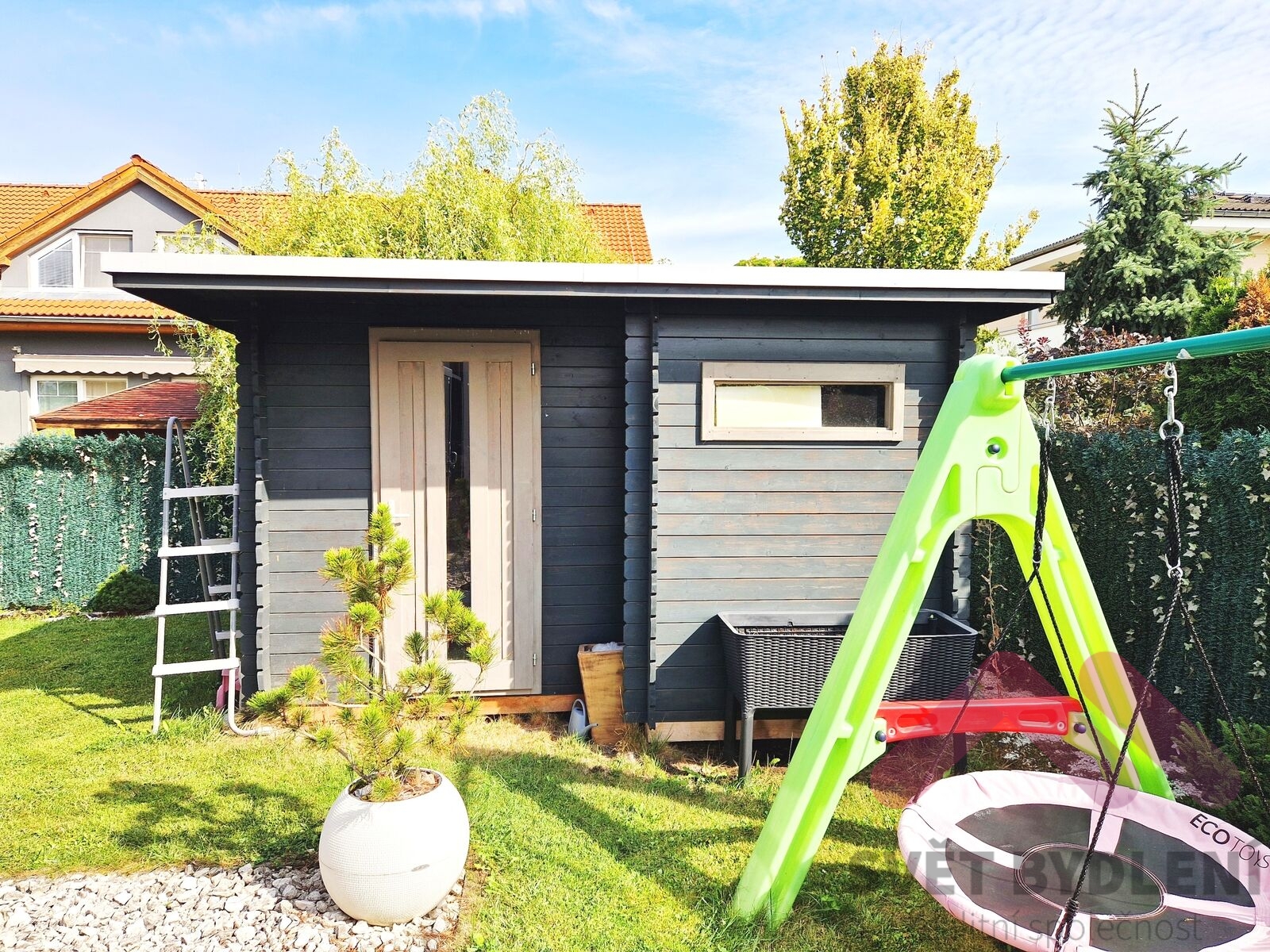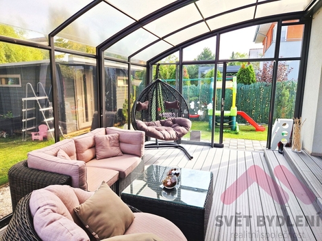 Nabízíme k prodeji dvoupodlažní rodinný dům z roku 2009 o zastavěné ploše 92 m2 s celkovým pozemkem 285 m2, situovaný v klidné a bezpečné slepé ulici v oblíbené rezidenční části Újezd nad Lesy. Dům je ve výborném stavu, pravidelně udržovaný a vybaven prvky, které výrazně zvyšují komfort bydlení. Přízemí Prostorný obývací pokoj s velkými okny a přímým vstupem do zimní zahrady. Otevřené propojení s moderní kuchyní vytváří příjemný rodinný prostor pro společná setkání. Kuchyňská linka je vybavena kvalitními spotřebiči a množstvím úložného prostoru. Technická místnost s úsporným kondenzačním kotlem zajišťujícím vytápění a ohřev vody. Garáž, aktuálně využívaná jako tělocvična a sklad, s možností navrácení do původní funkce. První patro Tři samostatné ložnice, všechny vybavené vestavěnými skříněmi na míru. Velká šatna - ideální pro přehledné uskladnění oblečení a sezónních věcí. Z šatny lze udělat další pokoj. Koupelna s rohovou vanou a podlahovým topením pro maximální komfort. Venkovní elektrické žaluzie na všech oknech, včetně střešních, zajišťující soukromí, tepelnou pohodu a bezpečnost. Možnost ponechání kompletního vybavení a nábytku dle dohody - ideální pro okamžité nastěhování. Zahrada a exteriér Zimní zahrada s posuvným otevíráním - skvělé místo pro odpočinek, rodinné oslavy nebo posezení s přáteli po celý rok. Velký zahradní domek pro uskladnění nářadí či sportovního vybavení. Zděný nadzemní bazén ( průměr bazenu je 3,9m2) pro letní osvěžení. Možnost ponechání herních prvků pro děti (houpačky, skluzavky apod.). Parkování pro dvě auta - jedno stání na pozemku a jedno přímo před domem. Lokalita Újezd nad Lesy je vyhledávaná městská část s výbornou dopravní dostupností a kompletní občanskou vybaveností. V okolí najdete školy, školky, obchody a restaurace, zastávky MHD v docházkové vzdálenosti. Dům je v blízkosti přírody, cyklostezek a parků. Dům díky své poloze poskytuje kombinaci klidu a soukromí, přesto je veškerá infrastruktura doslova za rohem. Cena a prohlídky: Nemovitost je připravena k okamžitému bydlení, bez nutnosti dalších investic.
