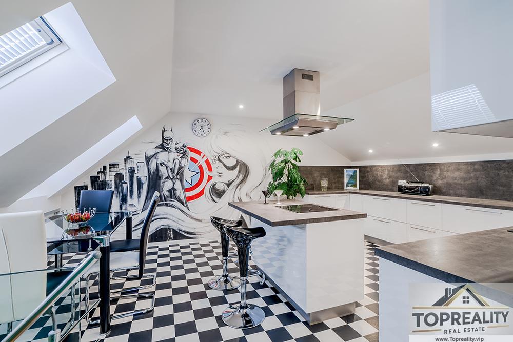 Nadčasová, nízkoenergetická (B), velkoryse pojatá, třípodlažní vila (z roku 2012) s bazénem, prosvětleným a vzdušným interiérem na slunném upraveném…