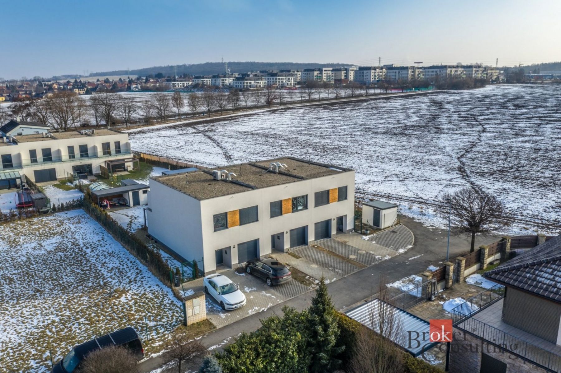Exklusivně nabízíme k prodeji moderní rodinný dům s promyšlenou dispozicí, v nadstandardním provedením a velmi nízkými provozními náklady. Dům byl kolaudován na jaře roku 2022 a je zařazen do energetické třídy PENB A. Dominantou domu je prostorný obývací pokoj s kuchyňským koutem a jídelní částí, který je díky velkoformátovým oknům krásně prosvětlený a má přímý vstup na krytou terasu. Terasa je zastřešena kvalitní hliníkovou pergolou s prosklením, umožňující komfortní využití po celý rok, a plynule navazuje na zahradu. Zahrada byla realizována na klíč renomovanou zahradní architektkou, s důrazem na estetiku, funkčnost a soukromí. Celkový koncept venkovních prostor přirozeně rozšiřuje obytnou část domu. Kuchyně je vybavena kvalitními vestavěnými spotřebiči a nabízí dostatek úložných prostor. Dům disponuje třemi samostatnými pokoji - ložnice, 2x dětské pokoje + pracovna. Dům má dvě koupelny v přízemí se nachází koupelna se sprchovým koutem, toaletou a umyvadlem, v patře pak koupelna se sprchovým koutem, vanou a umyvadlem. Toaleta je řešena samostatně. Koupelny jsou v moderním stylu s kvalitní sanitou, samozřejmostí jsou vestavěné skříně a praktické úložné prostory. V celém domě je instalováno podlahové vytápění, které zajišťuje plynový kotel sloužící zároveň k ohřevu teplé vody. Součástí domu je rekuperace, provedena příprava na klimatizaci a přívod třífázové elektřiny (380 V), vhodný pro instalaci nabíjení elektromobilu. Použité materiály a technologie odpovídají vysokým nárokům na komfortní a úsporné bydlení. K domu náleží garáž a další dvě parkovací místa na vlastním pozemku. Lokalita Praha 8 Dolní Chabry nabízí kompletní občanskou vybavenost, základní i mateřskou školu v docházkové vzdálenosti do 5 minut, a zároveň velmi dobrou dopravní dostupnost jak MHD, tak automobilem. Dům je ideální volbou pro klienty hledající moderní, kvalitní a energeticky úsporné bydlení v klidné části Prahy, bez nutnosti dalších investic. <a href="https://www.eurobydleni.cz/byty/2_kk/praha-10/obec-vrsovice/pronajem/"><strong>Pronájem bytu 2+kk Praha 10, Vršovice</strong></a>