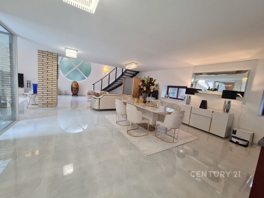 Hledáte víc než jen dům? Nabízíme architektonický skvost v lokalitě Praha 4 ve velmi klidné, čisté a bezpečné rezidenční čtvrti vkusně udržovaných rodinných domů. Tato nemovitost není jen bydlením, je vyjádřením životního postoje pro ty, kteří nehodlají dělat kompromisy mezi luxusem, technologiemi a klidem. Elegance v každém detailu Tato vila byla postavena s důrazem na nekompromisní kvalitu materiálů a nadčasový design. Velkorysé prosklené plochy propojují interiér s exteriérem a zaplavují prostor přirozeným světlem, zatímco špičkové technologické vybavení zajišťuje maximální komfort a bezpečí. Ojedinělá investice do kvality života Trh s luxusními nemovitostmi v Praze nabízí mnoho, ale domů v této kvalitě a s takto promyšleným konceptem je minimum. Vila představuje ojedinělou příležitost pro náročnou klientelu, která ocení diskrétnost a prémiový standard. "Tato nemovitost je určena pro ty, kteří hledají absolutní vrchol současného bydlení v Praze." Vila s dispozicí 6+1 dominuje naprosto otevřeným konceptem a katedrálovým stropem nad dvoukřídlým obývacím prostorem s přímým vstupem na velkou 70 m2 terasu ukrytou za 6m vysokým stromořadím. Dominantní moderní křišťálové chandeliers jsou umístěny ve všech prostorách vily, včetně koupelen. Vila je částečně zařízena. Veškeré vybavení, spotřebiče a vybavení koupelen a obou moderních kuchyní pochází od značek Villeroy Boch, Optimal, Dolomite, HansGrohe, Vigor, Siemens, Privileg, Baumatic. Střecha domu a svody jsou měděné. Architektova (Ing. arch. Michael Klang, CSc., MBA) pozornost k detailu a energetické úspornosti není zanedbatelná - 72 cm silné obvodové zdi zajišťují efektivní izolaci. PENB B. Vila nabízí luxusní břidlicí obložené wellness v polosuterénu s bazénem o velikosti 284 m2, barem, fitness a saunou. V 1. patře s ložnicemi, koupelnami a galerií nad rozlehlým dvoukřídlým obývacím prostorem je přístupné dvěma širokými nezávislými schodišti. S obývacím prostorem sousedí atypické a praktické řešení prostoru moderní kuchyně, na kterou navazuje další moderní plnohodnotná všemi spotřebiči vybavená kuchyň (tzv. přípravna), která umožňuje přípravu pokrmů separátně mimo otevřený koncept. Ve SPA a obývacím prostoru je komínová příprava pro krby. Všechna podlaží jsou přístupná výtahem. V nejvyšším podlaží se nachází nezávislý 64 m2 studiový apartmán s kuchyňským koutem a dvěma rozsáhlými terasami (32 m2 a 37 m2). V přízemí domu se nachází ložnice pro hosty s koupelnou (dnes využívána pro uvítací salón). Vila disponuje pěti ložnicemi a čtyřmi koupelnami. Parkování pro 3 vozidla je zajištěno v prakticky řešené vyhřívané garáži 53,3 m2, která je zcela průchozí dvěma vstupy. Další 3 až 4 vozidla lze parkovat na oploceném pozemku s výškou zdí 2,5 m, který je celý úkryt za vysokým stromořadím. Pod terasou je vybudován sklep 35 m2 s vlastním vstupem. Občanská vybavenost v dosahu pár minut chůze, včetně mateřské školy, základní školy, gymnázia, mezinárodní britské školy, obchodního centra, sportoviště, nemocnice IKEM a Thomayerovy nemocnici. Nemovitost se nachází v blízkosti rozsáhlého lesoparku, cyklostezek, ECOkoupaliště. Tržnice SAPA 3 km, MHD Mariánská 300m, Durychova 300m, metro Nové Dvory ve výstavbě 700m, lékař 300m.