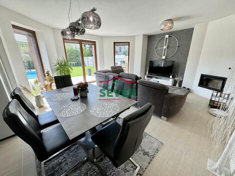 Nemovitosti SEVER vám zprostředkují koupi novostavby dvoupodlažního rodinného domu s dispozicí 7+kk s garáží v Praze, ve vyhledávané a lukrativní lokalitě Újezd nad Lesy, ul. Novosibřinská. Rodinný dům se skládá z předsíně, ze které lze vstoupit do pracovny, společně řešené koupelny s toaletou a chodby. Z chodby lze vejít do obývacího pokoje spojeného s jídelnou, kuchyňským koutem a také přímým vstupem do zahrady. V chodbě je k dispozici schodiště do patra a komora pod schody. V patře domu nalezneme čtyři ložnice, prostornou šatnu a hlavní koupelnu, ve které je k dispozici toaleta, vana a také sprchový kout. Dvě ložnice disponují vlastním balkónem. Dále je zde vstup do podkroví, které lze využít jako úložný prostor. V přízemí domu je podlaha vytápěná, v patře domu je topení ústředně rozvedené a k dispozici je také zabudovaný krb v obývacím pokoji. Moderní kuchyňská linka disponuje vestavěnými spotřebiči šestého smyslu od značky Whirlpool. Dům je zateplený a vybavený izolačními okny s trojskly a elektrickými, dálkově ovládanými žaluziemi. V domě je zabudovaný zabezpečovací systém značky Jablotron, kamerový systém a na střeše je nainstalována anténa značky O2, ze které vedou datové kabely do každé místnosti. Součástí domu je garáž s elektrickými sekčními vraty a kompletně oplocená, rovinatá zahrada s výměrou 458 metrů čtverečních. Součástí zahrady je terasa, o rozloze 45 metrů čtverečních, a bazén se slanou vodou a protiproudem. Vjezd na pozemek je zajištěný přes dálkově ovládanou dvoukřídlou bránu. Veškerou občanskou vybavenost vč. obchodů, lékaře, školy a školky nalezneme v blízkém dosahu. Doprava v okolí je dobře dostupná, zahrnuje vlak, MHD a dálnici. Výborná dostupnost do centra města. V roce 2027 by měl být vybudován dálniční obchvat. V případě zájmu zajistíme optimální variantu financování na tuto nemovitost za zvýhodněných podmínek pro naše klienty. <a href="https://www.eurobydleni.cz/byty/2_kk/strakonice/obec-strakonice/pronajem/"><strong>Pronájem bytu 2+kk Strakonice</strong></a>