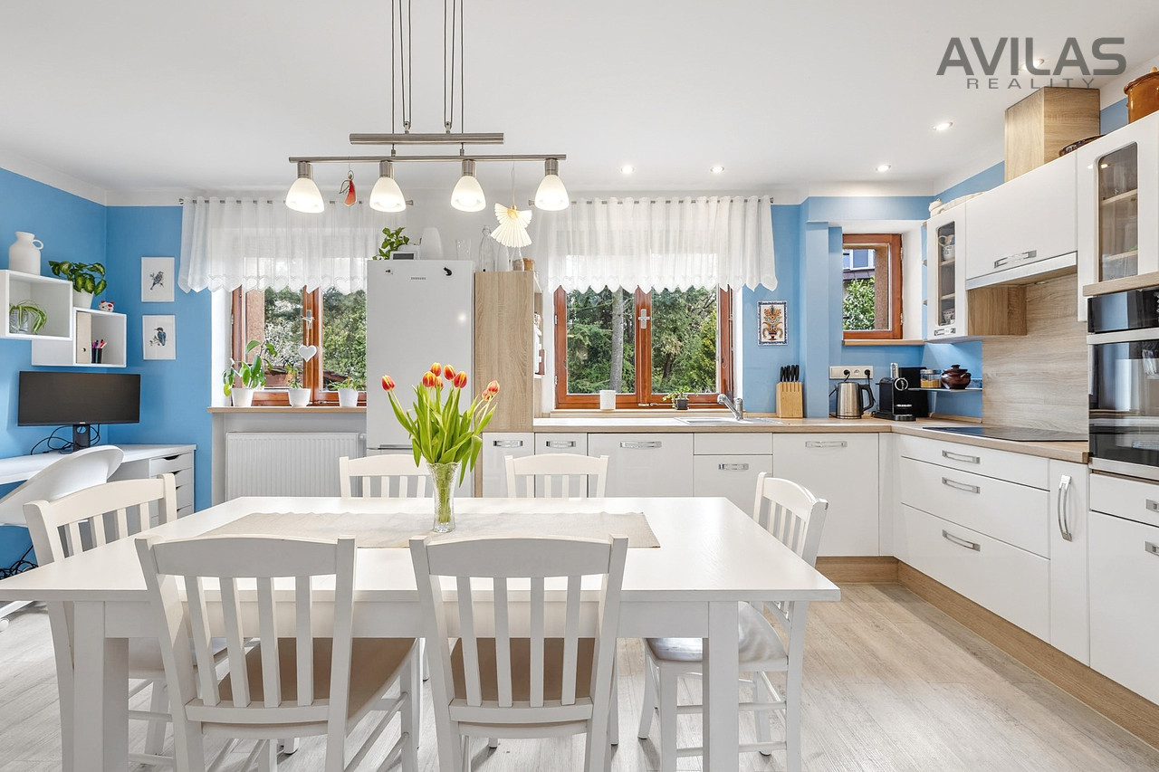 Nabízíme k prodeji rodinný dům 6+2 s celkovou podlahovou plochou 267 m2 a garáží v klidné části Hloubětína, ulice Poříčanská. Dům z roku 1970 je postaven v původní vilové zástavbě a v roce 2000 prošel rekonstrukcí (změna na vícegenerační bydlení včetně podkroví), další rekonstrukce proběhla v roce 2015 v 1.NP domu (úprava dispozice pokojů, výměna topných těles, rekonstrukce koupelny + WC, kuchyně) a v roce 2023 rekonstrukce 2.NP (chodba, koupelna s WC a kuchyně). Dům svou velikostí nabízí ideální zázemí pro rodinné bydlení. Dispozice jednotlivých podlaží a umístění schodiště zároveň umožňují, po menších úpravách, rozdělení na až tři samostatné bytové jednotky - vhodné jak pro vícegenerační bydlení, tak i k pronájmu. Prostorná zahrada poskytuje dostatek místa pro výstavbu menšího objektu k podnikání (např. kadeřnictví, ordinace či kancelář) nebo vedlejšího bydlení (vejminek). Dispozice 1.NP: obývací pokoj, kuchyň, ložnice, koupelna s wc, ze zádveří schodiště do prvního patra. Dispozice 2.NP: obývací pokoj, ložnice, kuchyň, koupelna s wc a vstup do podkroví. Dispozice podkroví:2x pokoj, šatna. Dispozice suterén: 3x sklad, prádelna, kotelna a chodba. Parametry: parcela 1.084 m2, zastavěná plocha 97 m2 dům + 28 m2 garáž, vytápění plynovým kotlem, ohřev vody elektrickým boilerem (1xbojler pro suterén a 1.NP, 1x bojler pro 2.NP a podkroví), el. 230V/400V (1x elektroměr pro suterén a 1.NP, 1x elektroměr pro 2.NP a podkroví), obecní vodovod, kanalizace, plyn, pozemek komplet oplocen. LOKALITA Rodinný dům se nachází v klidné části Hloubětína disponující veškerou občanskou vybaveností a dobrou dopravní infrastrukturou. Oblast tvoří rodinné domy - původní zástavba. Stanice autobusu a tramvaje jsou 4 minuty chůze od domu a stanice metra „Hloubětín“ do 8 minut chůze od domu, obchodní centrum Černý Most 4 km. Nájezd na Pražský okruh 4,7 km. V okolí najdete veškerou občanskou vybavenost - mateřské a základní školy, poštu, polikliniky, lékárnu, obchody, potraviny, dětská hřiště, kulturní vyžití atd. Pro volnočasové aktivity můžete využít okolní cyklostezky, tenisové kurty, sportovní centrum, fotbalové hřiště, sokolovnu nebo venkovní posilovny. Do přírody do parku Lehovec nebo parku U Čeňku. nedaleko je Kyjský rybník, který nabízí možnost rybaření, v zimních měsících bruslení; celoročně otevřený krytý plavecký bazén (čerstvě po rekonstrukci) je ve vzdálenosti cca. 850 metrů.